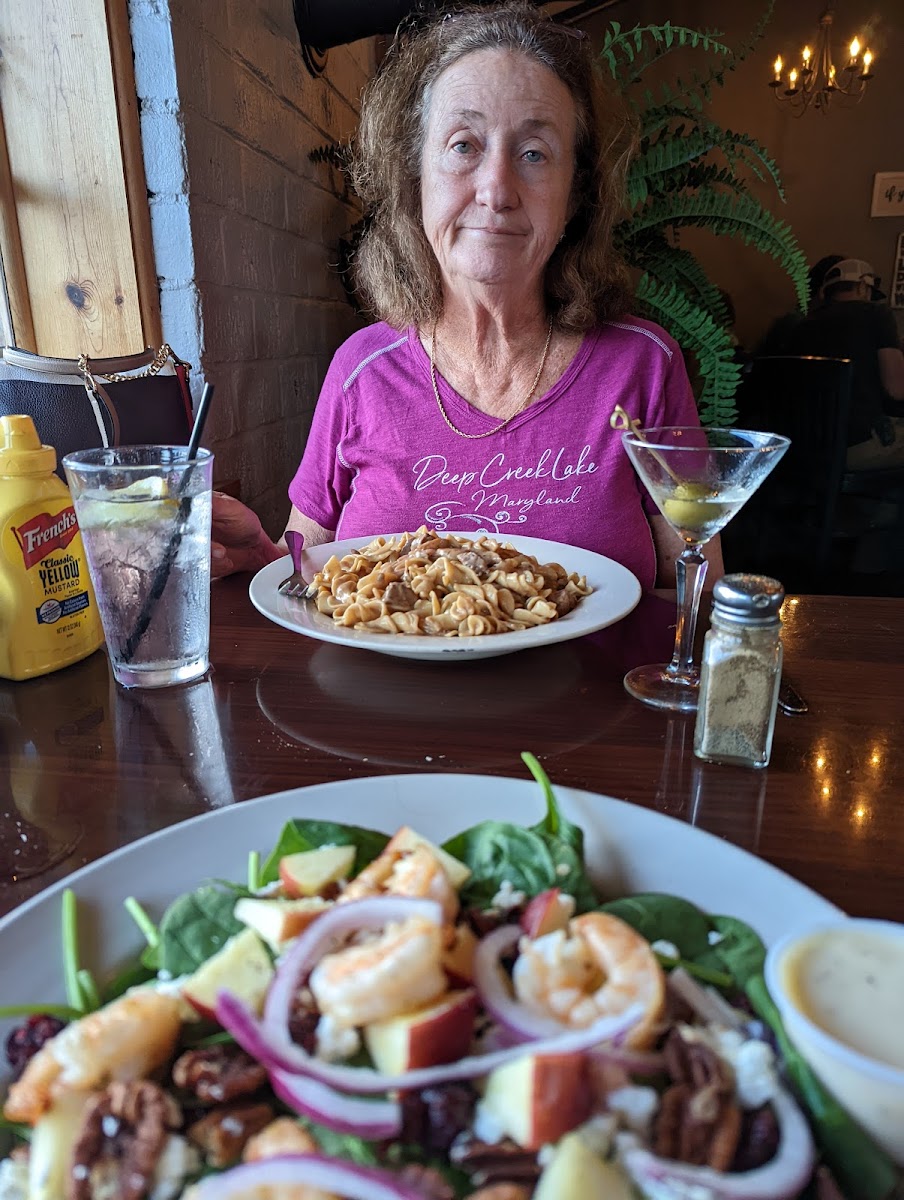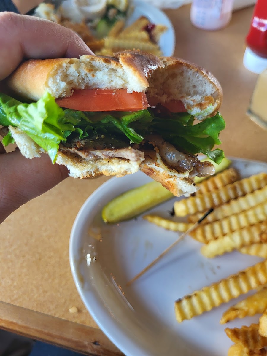 A nice little restaurant that is family friendly or a nice evening out with your special someone. I started my dinner off with the Artichoke dip. It was delicious. Then I had the Sriracha BBQ half rack ribs with a baked potato and spinach. There Tea is delicious, you get a container with sugar water to sweeten your tea as you wish. Pretty neat. The other meals ordered in my group was the hamburger steak with mashed potatoes and fried Apples and a Turkey Ruben sandwich with homecut fries. All was delicious.