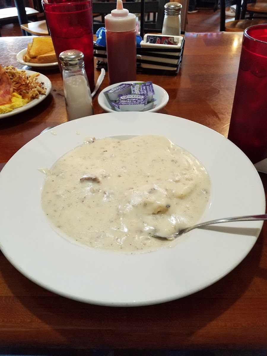 Food was delicious but the biscuits you could tell were in the freezer or something before hand.