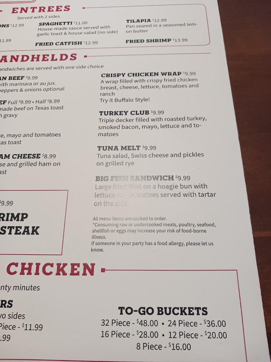 1/3 lb. Angus patty topped with ketchup, mustard, pickle and onion Make it Deluxe with lettuce, tomatoes, green olives and mayo for an additional charge. Consuming raw or undercooked meats, poultry, seafood, shellfish or eggs may increase your risk of foodborne illness. If someone in your party has a food allergy, please let us know.