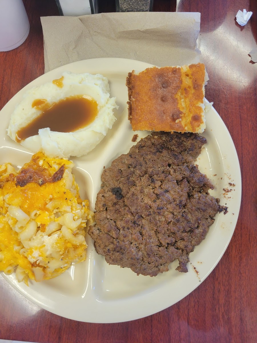Best home cooked style meat and veggies around! Always fresh and the veggies don't taste like they opened up a can and warmed them up. Mac and cheese like mom made. Fried chicken is always crispy and tender. If you're in the mood for something besides the meat and veggies, they serve a delicious chili cheeseburger as well.