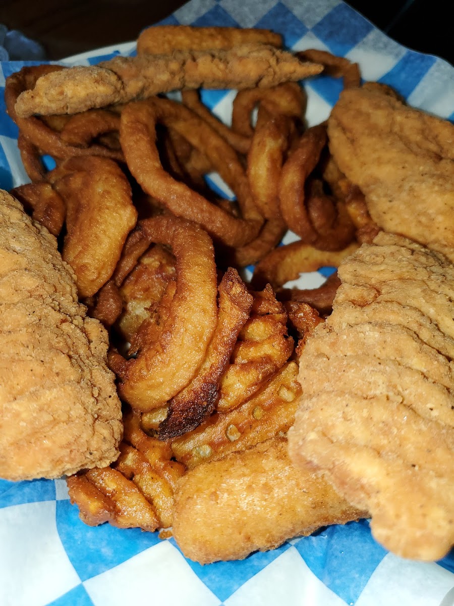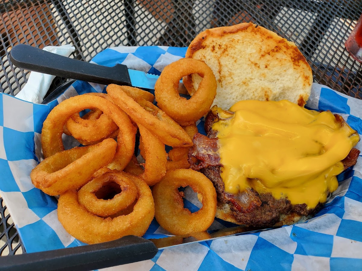 Best onion rings ever!! Great friendly servers. The outdoor seating looks right out onto the river. All we had to do was bring this great sunny day .
