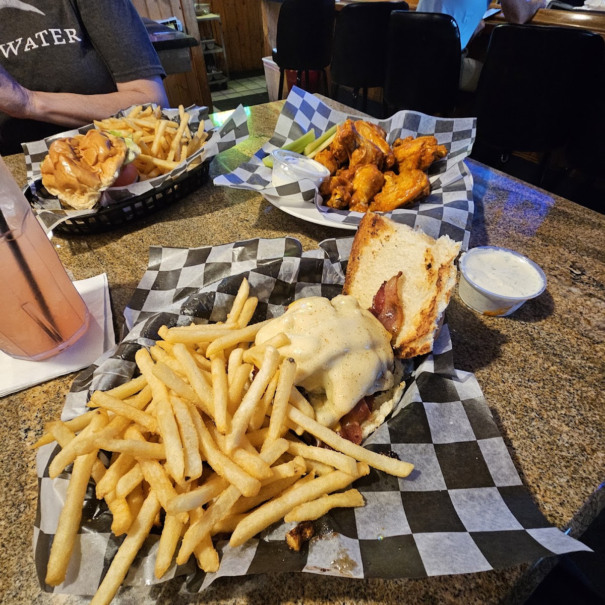 My family had a wonderful experience! We had a battleship burger, BBQ chicken wings, and a grilled cheese with fries. They were all delicious. Also, we didn't have to wait for a long time to get our food. The server was kind and friendly. We'll definitely come back!