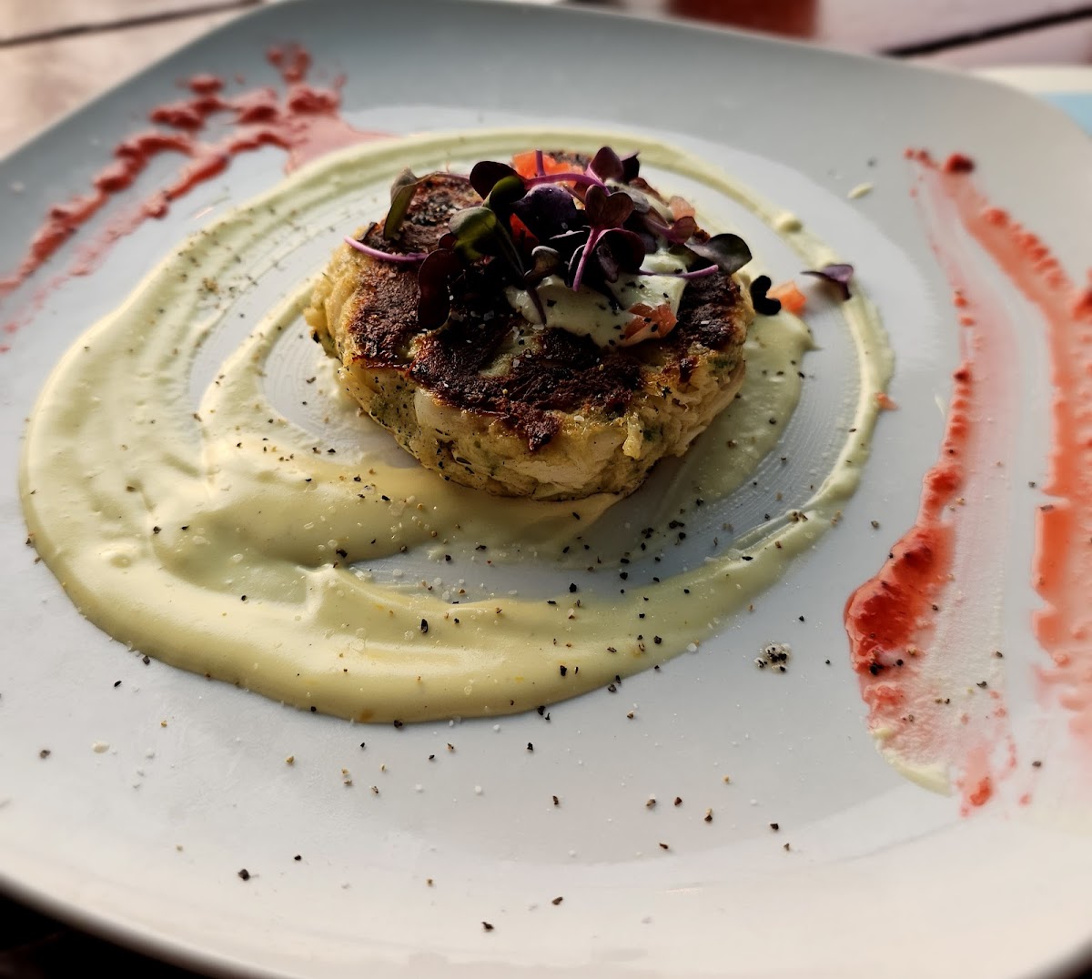 This is truly a gem. It has an absolutely amazing outdoor bar and dinning area with beautiful views of the river and great ambiance. And the food…the FOOD WAS INCREDIBLE! We still talk about the risotto and scallops. Our meal was up to par with any fine dinning we have had in the big city! Although the wait time for a table and for the food to come was very long it did not matter once we tasted our dinner. Do not skip this place.