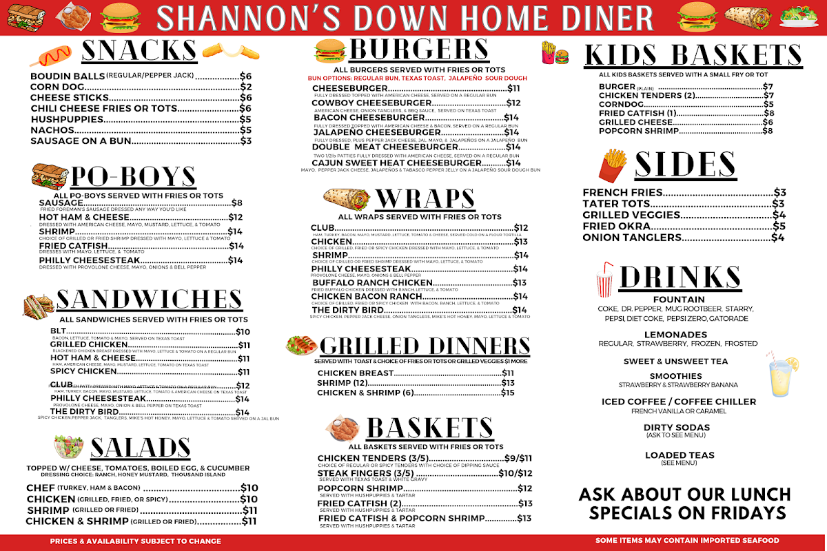 Burger, Wrap, Sandwich, Po-Boy, Salads - Sandwiches