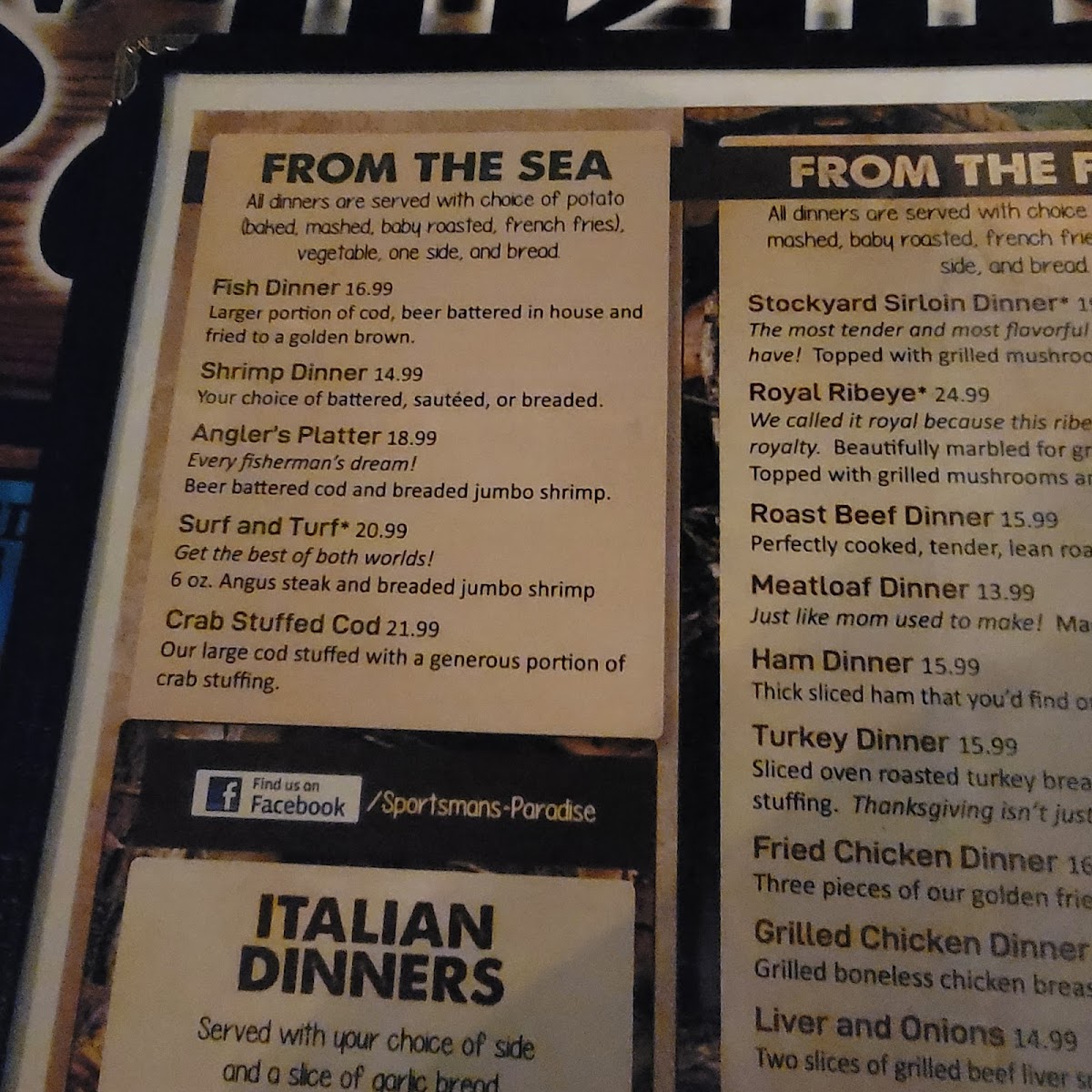 Breaded Chicken served over a bowl of Spaghetti, smothered with Marinara Sauce and Provolone Cheese; served with Garlic Bread and choice of Side