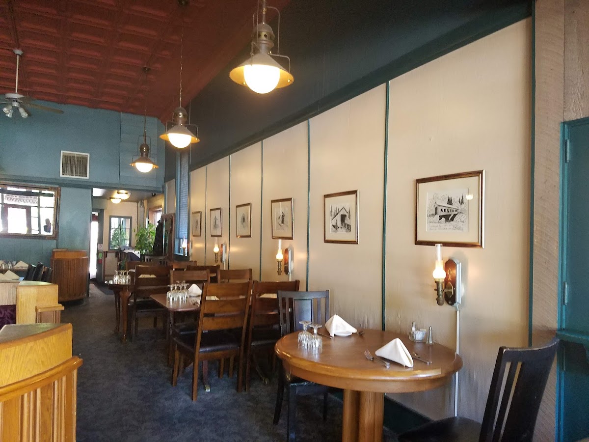 Last minute choice and it was a great one! We were seated right away in our own cozy nook with painted walls looking like the inside of a covered bridge. So quaint. The antique tables, chairs and light fixtures are a great touch, we loved them. I had the special of Beef Stroganoff and hubby had the all you can eat salad and soup. He had a bowl of the Taco soup and a cup of the seafood bisque and he said it was hard to choose which was better but he would have both again. My surprise was that the beef in the stroganoff was a steak! So good, but it was enough for this meal and 2 at home!!! Service was excellent, food was awesome in a great atmosphere. We will be back!