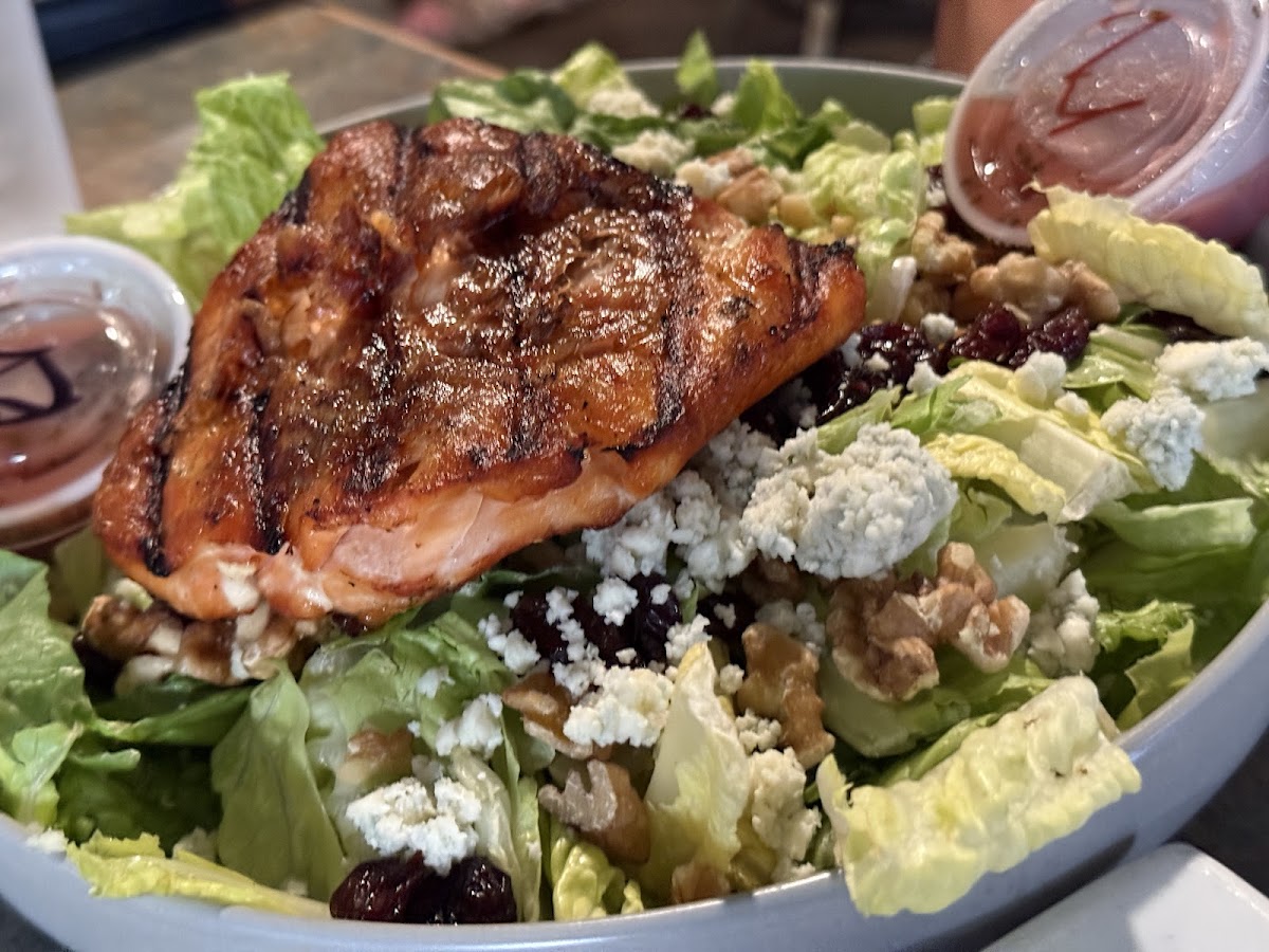 Service was great . I got the BBQ chicken pizza. It was good. I would give it a 6.8 out of 10. If ranch was drizzled on top that would bump up my score. Bread sticks and pizza sauce was good. My daughter got the BLT. She rates it a 6.5. She thinks it should be a BLTA. BLT + avocado . Daughter gave the Mac and cheese a 3.0 out of 10. My parents were very happy with the vegetarian pizza 8.0 out of 10. Our waitress Maddy was awesome very nice and made sure we had what we needed.