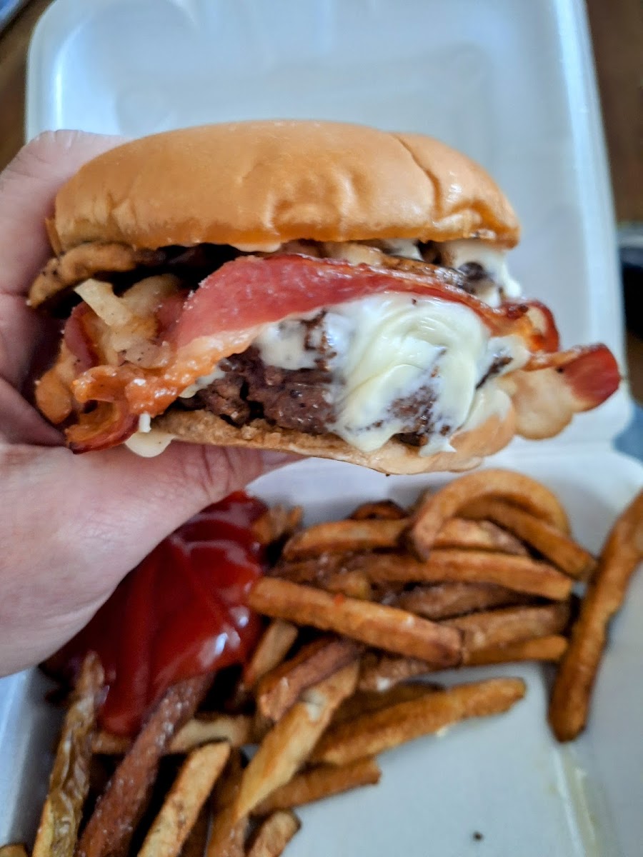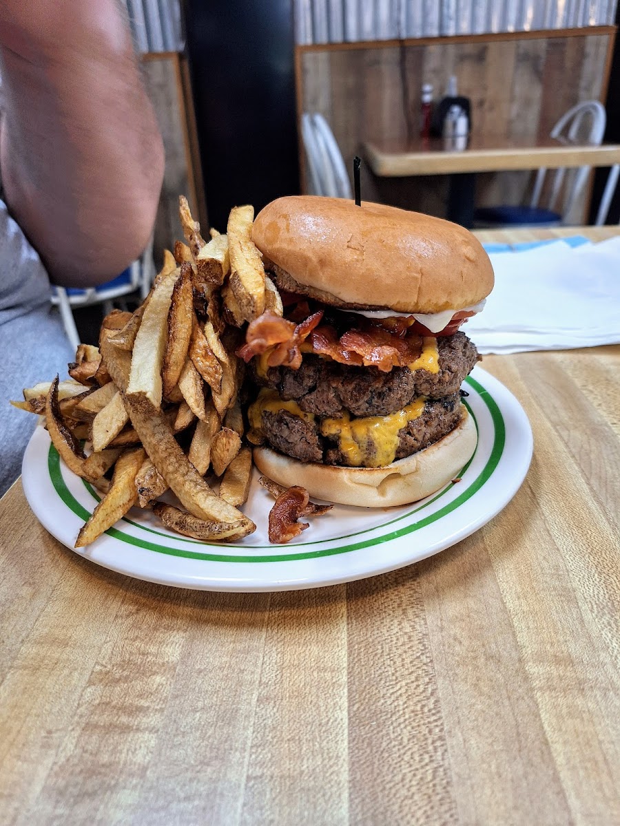 First time visit & it Won’t be my last. I ordered one pannycake, since it was big, crispy, double order of bacon crispy & and glass of milk. They Understood The Assignment! It Was Gooooooodt!!! And They Gave Me A Military Discount! Nice time, I will order 2 pannycakes After that, lunch is next Tried the double cheeseburger basket. If you love cheeseburgers like I do, COME HERE!!! Huge Tasty Bangin Burgers With Freddie Fries! My Son & I Enjoyed Them! They Were Goooooodt!!!