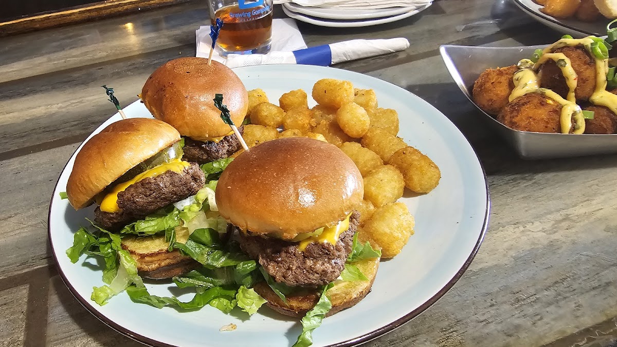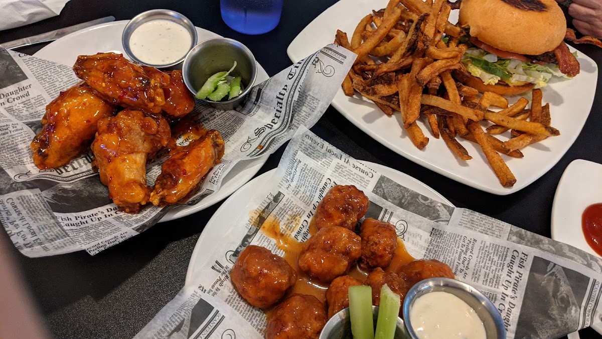 The menu is varried and has a range of regular bar food to vegan and gluten free. Including fish ( see salmon skewers image - PS avoid this ). Their burgers are well flavored, loaded and very thick. Their pizza is amazing and one of the best I have had in TN ( NY native ). Their tap tends to rotate so you can usually find something you enjoy even though it might not be there the next time. Overall a diamond in the rough for White House. Don't miss this gem .