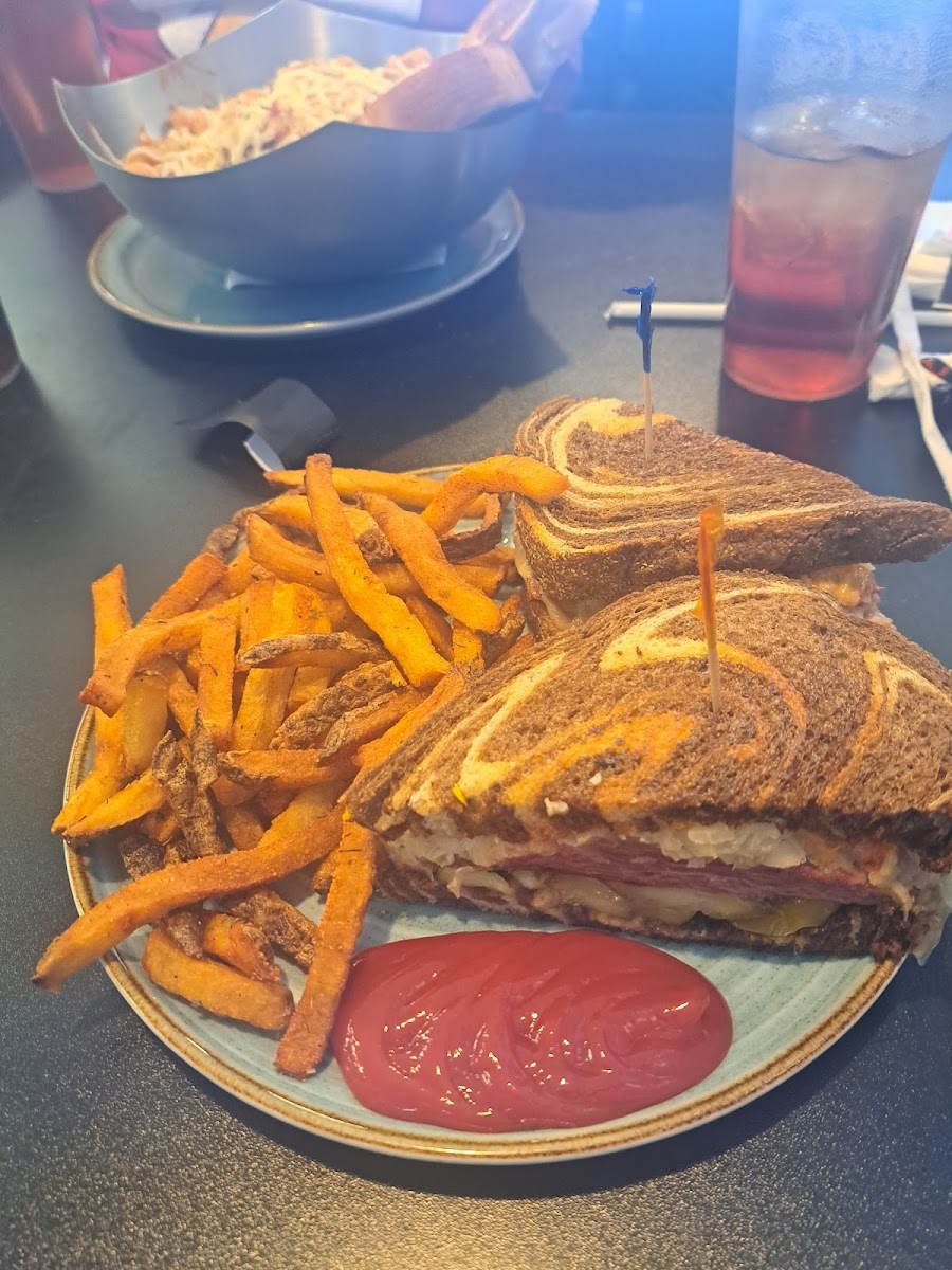 I recently visited Tavern 76 and had the pleasure of trying their Ruben sandwich. Let me start by saying that it was absolutely delicious! The combination of tender corned beef, sauerkraut, Swiss cheese, and Thousand Island dressing on perfectly toasted rye bread was simply mouthwatering. Each bite was packed with flavor, and the sandwich was prepared with great care and attention to detail. I couldn't have asked for a better Ruben sandwich. However, I must admit that I was a bit disappointed with the Philly cheesesteak sandwich I ordered. While the flavors were there, the sandwich lacked the authenticity and traditional elements that make a Philly cheesesteak truly outstanding. The meat was a bit chewy, and the cheese wasn't melted to perfection. It fell short of the high expectations I had for a classic Philly cheesesteak. Despite this small hiccup, I must commend Tavern 76 for their attentive and friendly service. The staff was welcoming, and they made sure that my dining experience was enjoyable. The beer was cold and the high noon was cold as well. Oh and the nachos were very good as an appetizer. In conclusion, I highly recommend Tavern 76 for their amazing Ruben sandwich. It is a true culinary delight that will satisfy any sandwich lover's cravings. While the Philly cheesesteak sandwich may need some improvement, the overall experience at Tavern 76 is still worthwhile. I look forward to returning and trying more of their delicious offerings. _——____— ⭐⭐⭐⭐⭐ 12/27/24 We recently dined at Tavern 76 again in White House, and I must say, it was an another fantastic experience! The highlight for me was the cold draft beer – it was refreshing and the perfect complement to our meal. Our waitress provided exceptional service, making us feel welcomed and attended to throughout the evening. While the fish and chips were good, I found the hamburger and fries to be the real standout. They were perfectly cooked and seasoned, making each bite a delight! Overall, Tavern 76 is a great spot to enjoy good food and excellent service. I can't wait to return!