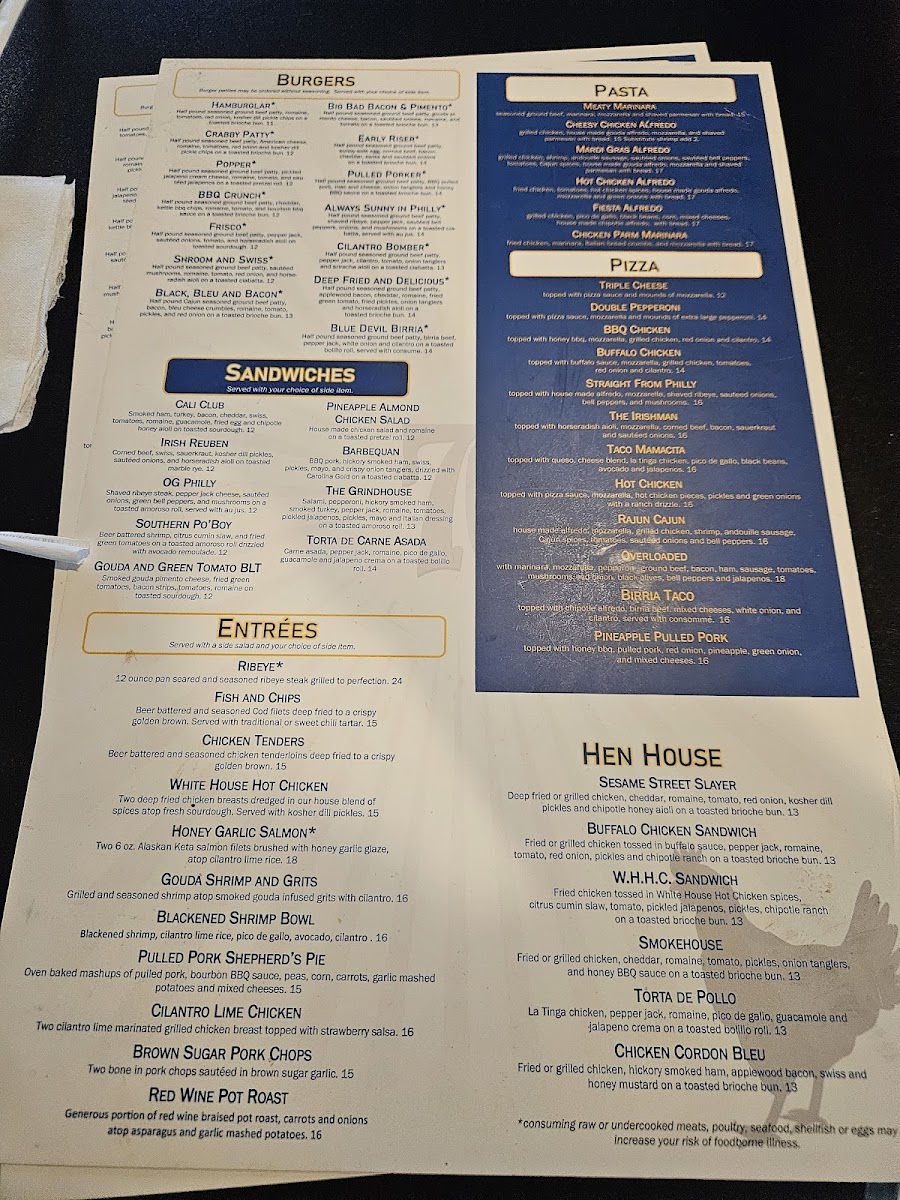 White house hot chicken, pickles, citrus honey slaw, and green onions drizzled with hot honey ranch.