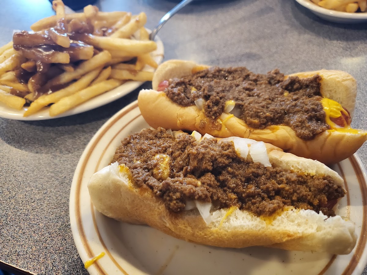This was a fun fund while visiting Kane. Walking in the door is like stepping back in time, but in a really good way. The booths and bar feel nostalgic. Watching the staff interact with regulars is a picture of community. The history on the back of the menu is an interesting read as well. Now to the food the dogs were hot, the special sauce was a hearty addition to the dog. If you're looking for quick service without a fast food gag reflex, Texas hot lunch might be just what you need. I would gladly visit again if in the area.