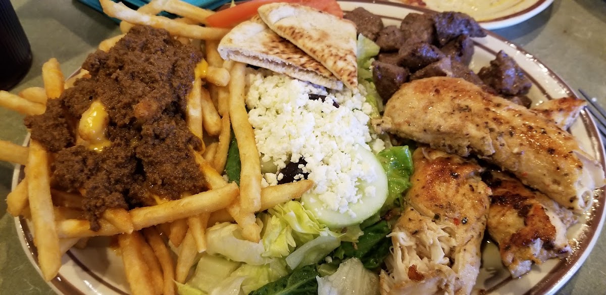 We sat in a booth and were waited on right away. I had the Texas style meatball sub with a side salad. The salad was fresh and good. The sub had their special sauce on it with a lot of melted mozzarella cheese. Delicious! She had the vegetable bean soup and went on and on about how good it was. She also had the 1/2 lb. Burger with gyro meat on it and raved about that too. A nice experience!