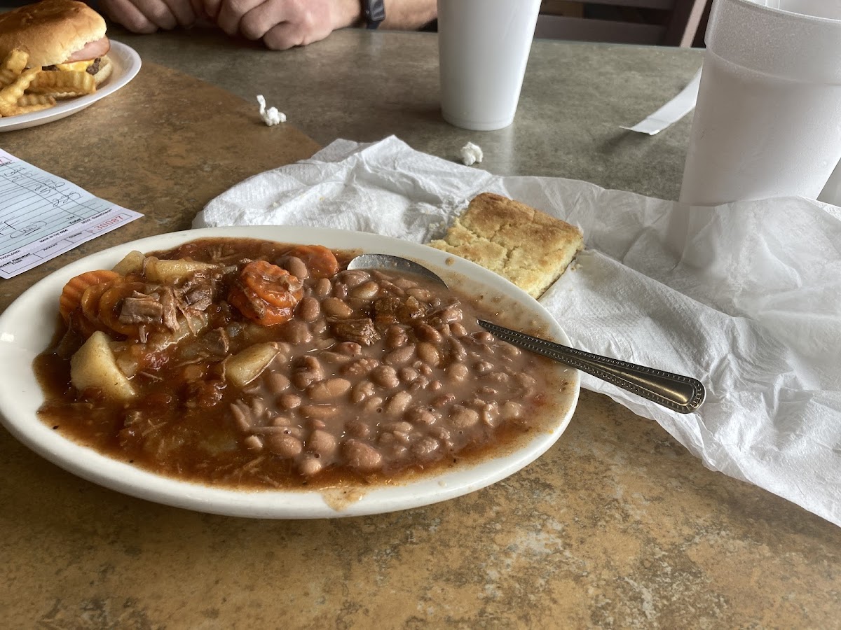 I had the Hobart Jr (basically a cheeseburger with ham). My wife couldn't decide between the beans or beef stew so she got the "Beans and Stew". Everything was very good and came out fast. Excellent food and service and cheaper than a lot of places we eat. I'm sure this is the first of many visits!
