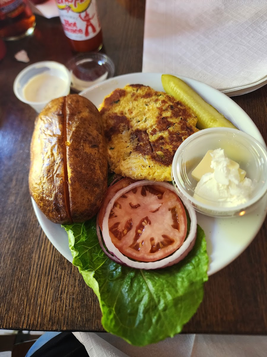 This is a cozy bar/grill serving up American cuisine. The restaurant is clean and remodeled, my first visit ever. The staff, maybe just a server and cook on duty, was friendly and welcoming. Three of us stopped in on our work lunch break. They were a bit busy and we were limited on time. We did have a wait and they expedited our order. Everything was fresh and straight off the grill. They serve hearty portions, good value for the quality.