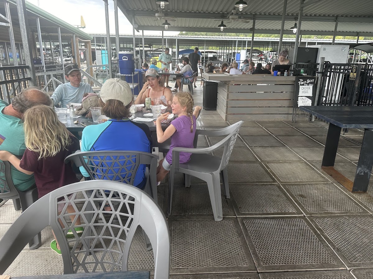We were in the area on a Thursday afternoon and gave it try. Food was fast and great taste. Service was friendly. We had Cheeseburger, Cajun Wings, Cheese Nuggets, and Chicken Tenders with fries. All was very good. It is located in the main part of the Marina. I does not have any signs, but we saw the tables inside. Lakeview is to the sides towards the slips. Prices are higher, but they are on the lake so to be expected. There is no kids' menu, but our kids split an adult meal.
