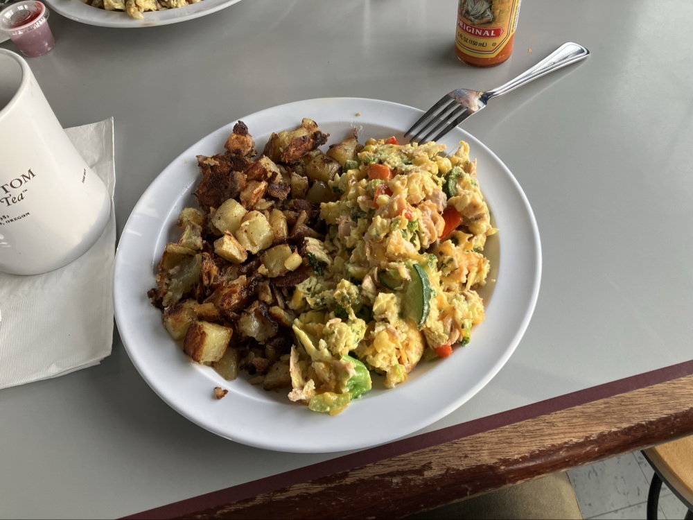 Ah, the Cup in Port Townsend, WA. We showed up early on a Monday morning. The kind of early where you start questioning your own decisions. The place already had that quiet diner energy where everyone looks like they’ve been awake since the invention of rope. The customers there were clearly regulars. They had the posture of people who’ve already put in a full shift before sunrise and are now just trying to remember what day it is. The one person working the dining room, who I’m pretty sure is also the mayor, the fire marshal, and the person who decides when the ferry leaves, told us to sit wherever we wanted. Then she told us the daily specials with the enthusiasm of someone who has accepted her fate. It wasn’t dramatic. It was more like, “Here’s what we have. It’s Monday. We’re all doing our best.” And honestly, I appreciated the honesty. Before we even walked in, we saw three raccoons outside the restaurant just… existing. One was a few feet up a tree looking like he was waiting for a bus that doesn’t come anymore. Another was pretending not to stare at us, which is exactly how raccoons stare at you. And the third one looked like he was in charge of the operation. It felt like we were interrupting something important, like a union meeting. They didn’t move. They didn’t care. They were the most confident customers there. I ordered the daily survival, the salmon scramble, and it was great. It had cheese, veggies, and so much sockeye that I briefly wondered if I needed to sign paperwork. The potatoes were good too, even the ones that had clearly been through something. You know when a potato looks like it’s seen the bottom of the pan and reconsidered its life choices? Those were in there. Still delicious. The scramble comes with toast, but they don’t have gluten‑free, so I had to pass. I didn’t take it personally. Gluten‑free toast is basically a science fair project anyway. The hot chocolate came in a big mug, the kind of mug that makes you feel like you should be telling a story about the frontier. By the time we left, two more servers had arrived, so the place went from “one person doing everything” to “a small but functional government.” The new customers were more relaxed than the early‑morning crowd. They looked like people who woke up after the sun, which is a luxury I can only dream about. The food was good, the prices were reasonable, and on our way out we wandered into what looked like a greenhouse that had been converted into a dining room. It was cute and intimate, the kind of place where you could either have a very meaningful conversation or accidentally knock over a fern and ruin your whole week. As one local fisherman, Gus “Barnacle‑Beard” McClary, told me on the way out: “If you ain’t had breakfast at The Cup, you ain’t earned your sea legs.” He said it like it was a threat, but in a friendly way. Also, I think I used “were” wrong somewhere in here, and I’m sorry. I don’t know proper grammar.