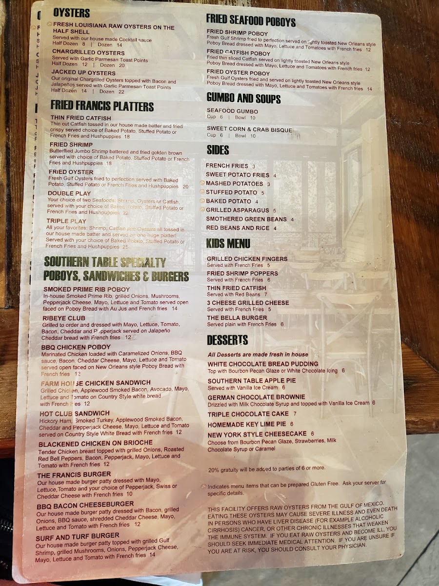 Southern Table Entrées - SEAFOOD - Oysters