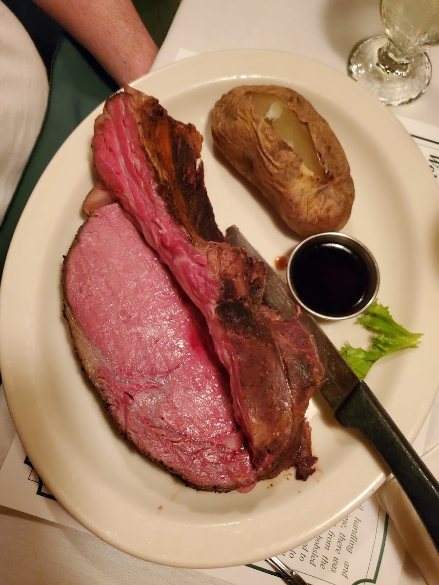 Food was amazing. Service was amazing. Highly recommend. Great wisconsin feeling dinner spot. We had potatoe skins for appetizer, and Vanilla bean creme brulee for dessert. Both were great. Prime rib for main course.