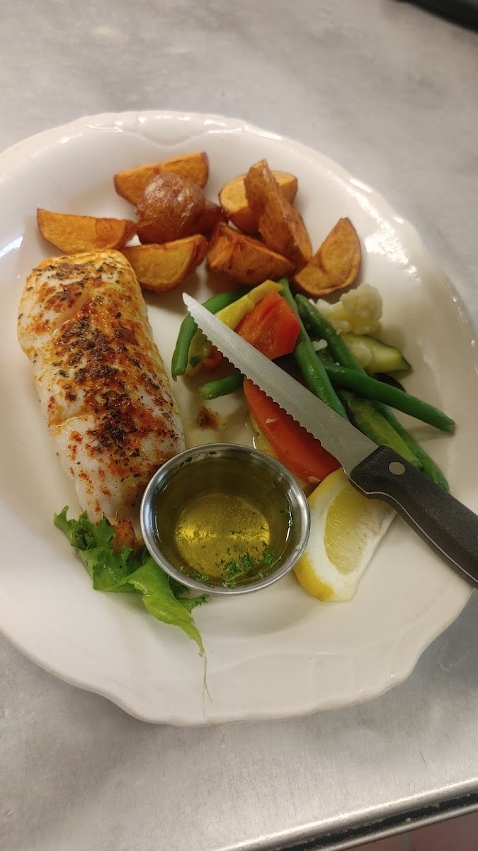Excellent food and drinks at reasonable prices. I really enjoyed the whitefish special that I ordered. Very tender and flavorful. I loved the steamed veggies it came with. My husband ordered the chicken and ribs. I took a bite of his ribs and the sauce wasn’t for me but he liked them. I think the BBQ was homemade and to me it tasted too much like ketchup. Service was attentive and friendly. With drinks and tip, it came to around $65/person.