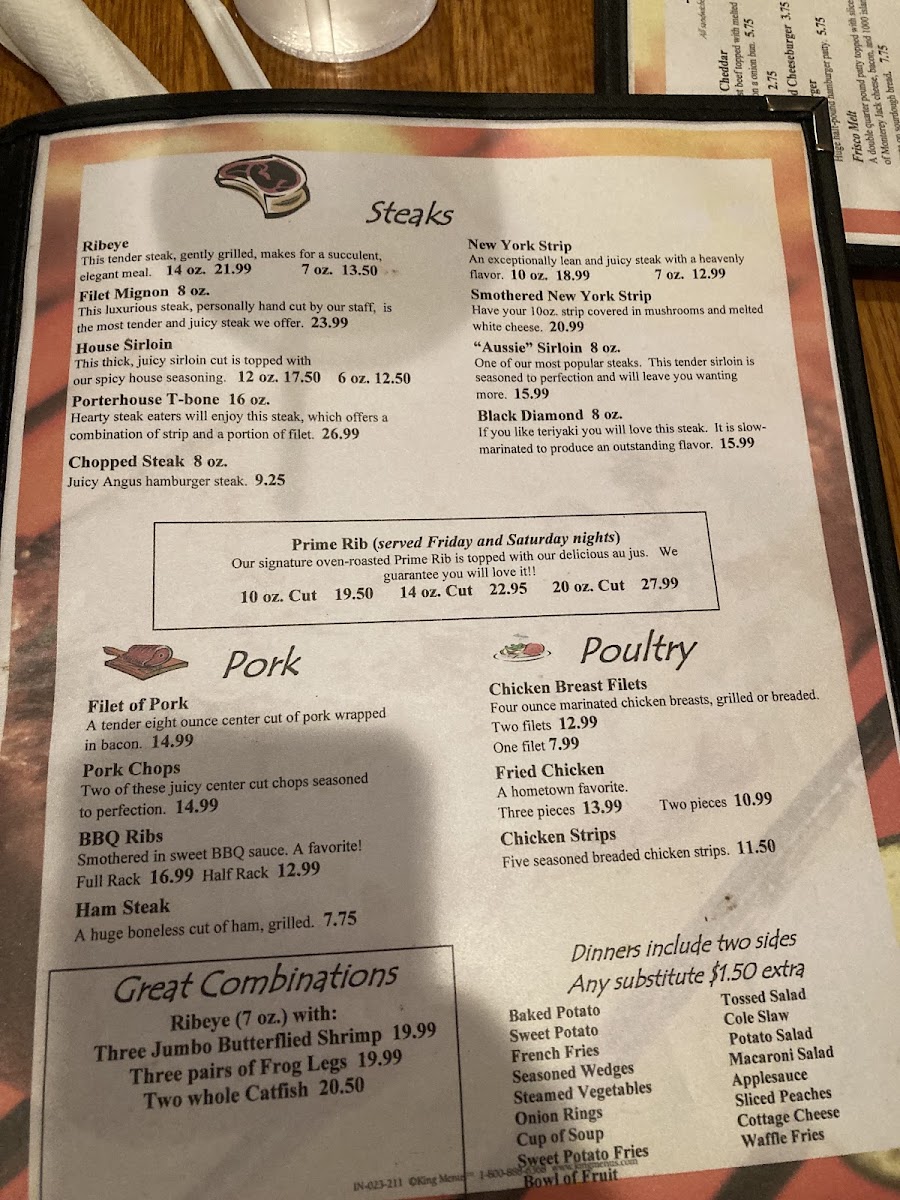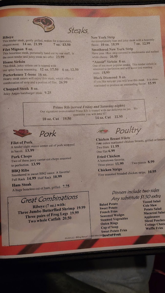 (served Friday and Saturday nights) Our signature oven-roasted Prime Rib is topped with our delicious au jus. We guarantee you will love it!!