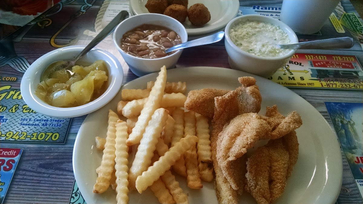 One of the best places that I have got to sit an have a real old time fashion meal!! Ty order a combo fish an shrimp an all u can eat beans, relish, hush puppies, coleslaw an salad with one sides well worth the price too!! Fast service! Never went thirsty.