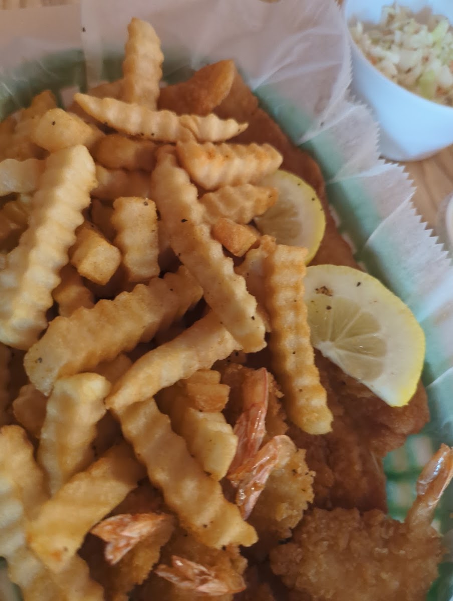I have only ordered food to go from here, so I can not leave a review about the Atmosphere. However, I will say when I picked up my food it was a quiet, laid back setting. The food is fabulous. I ordered the Brunswick Barge. The portions are very generous so make sure you're hungry or have someone to share with.