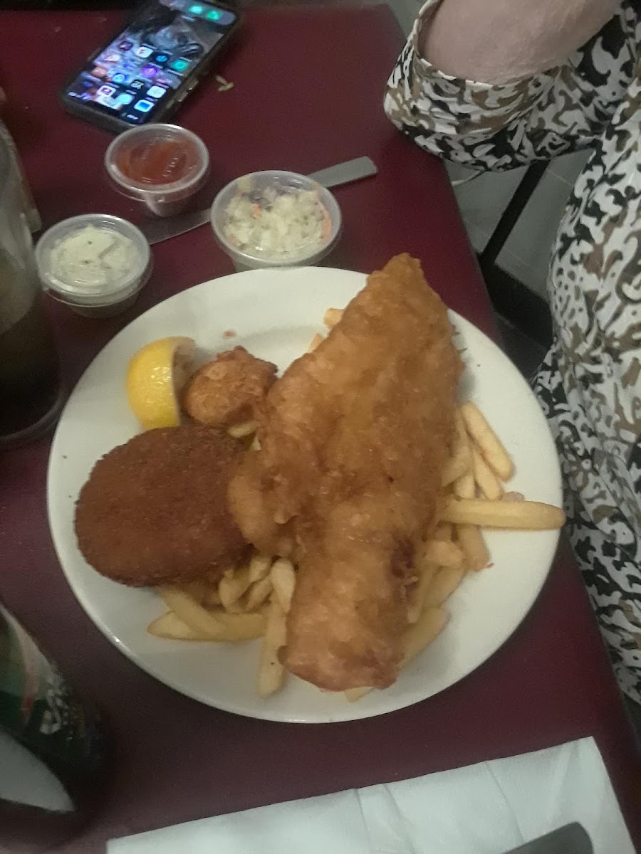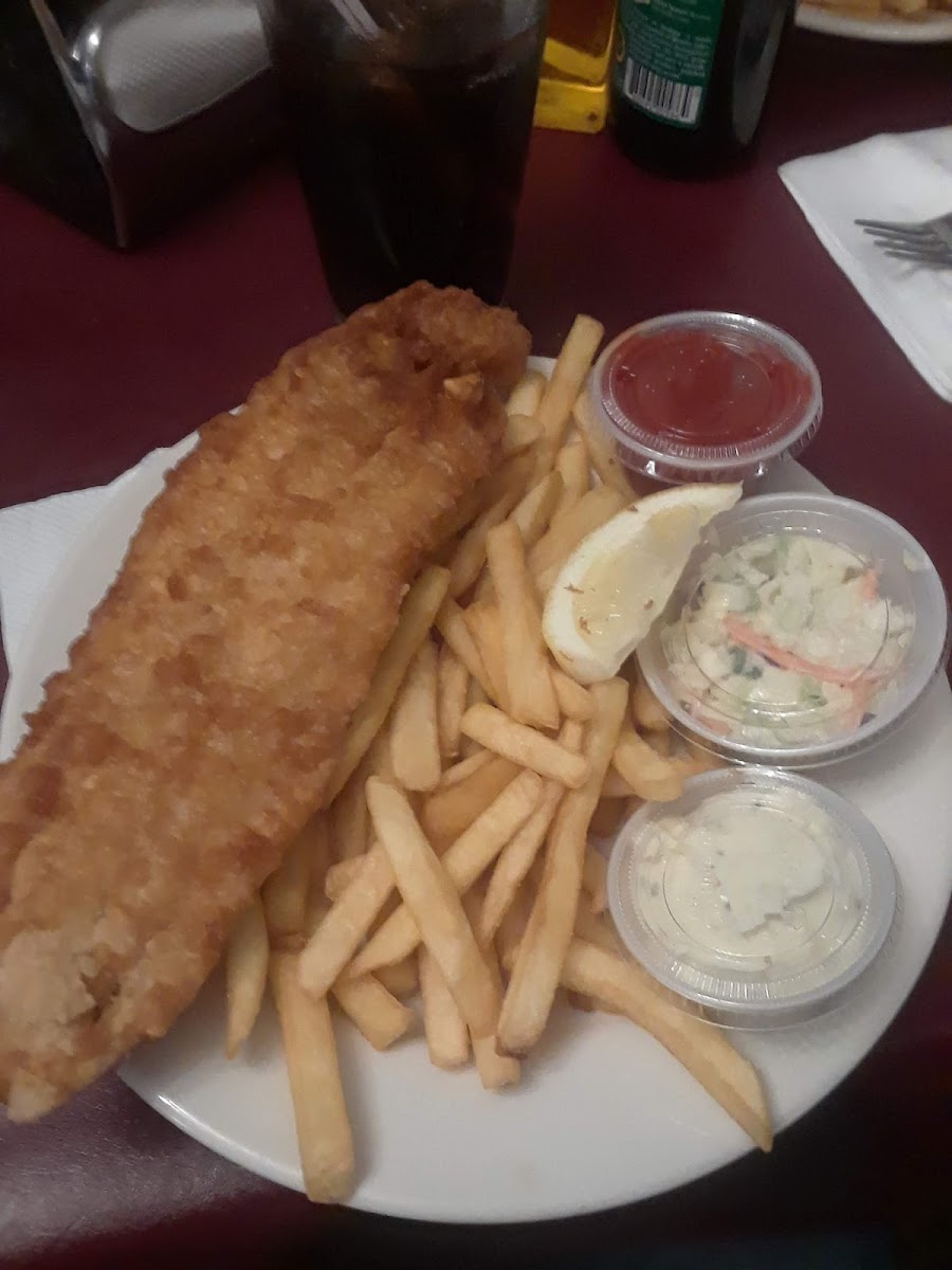 We tried the fish fry and the captain's platter. Fish had a light crispy batter but some of the items on the platter were over breaded. But overall it was very good. They gave you soup and salad before your meal. The place definitely needs an update, I guess the building has been there for a long time. Going back again to try other stuff eventually.
