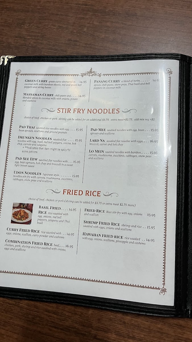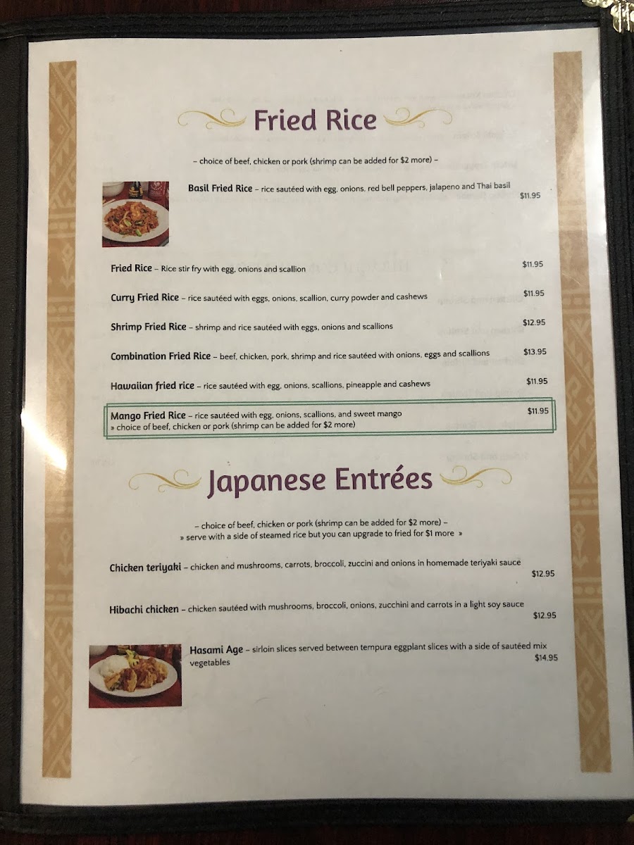 Rice sautéed with egg, onions, red bell peppers, jalapeno and thai basil.