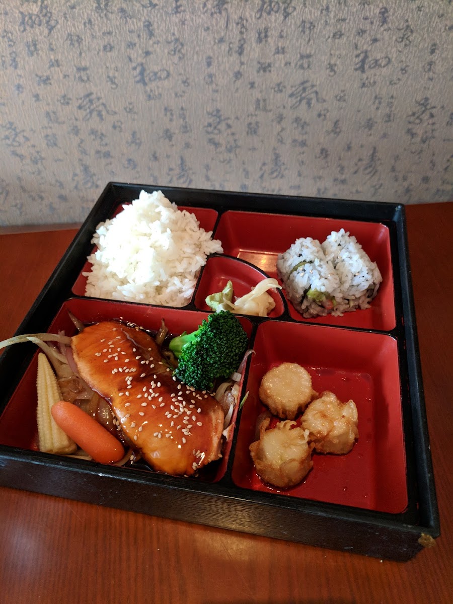 Ordered a sashimi lunch with shumai and the food was excellent. The customer service was top notch. The staff was very attentive and kind.