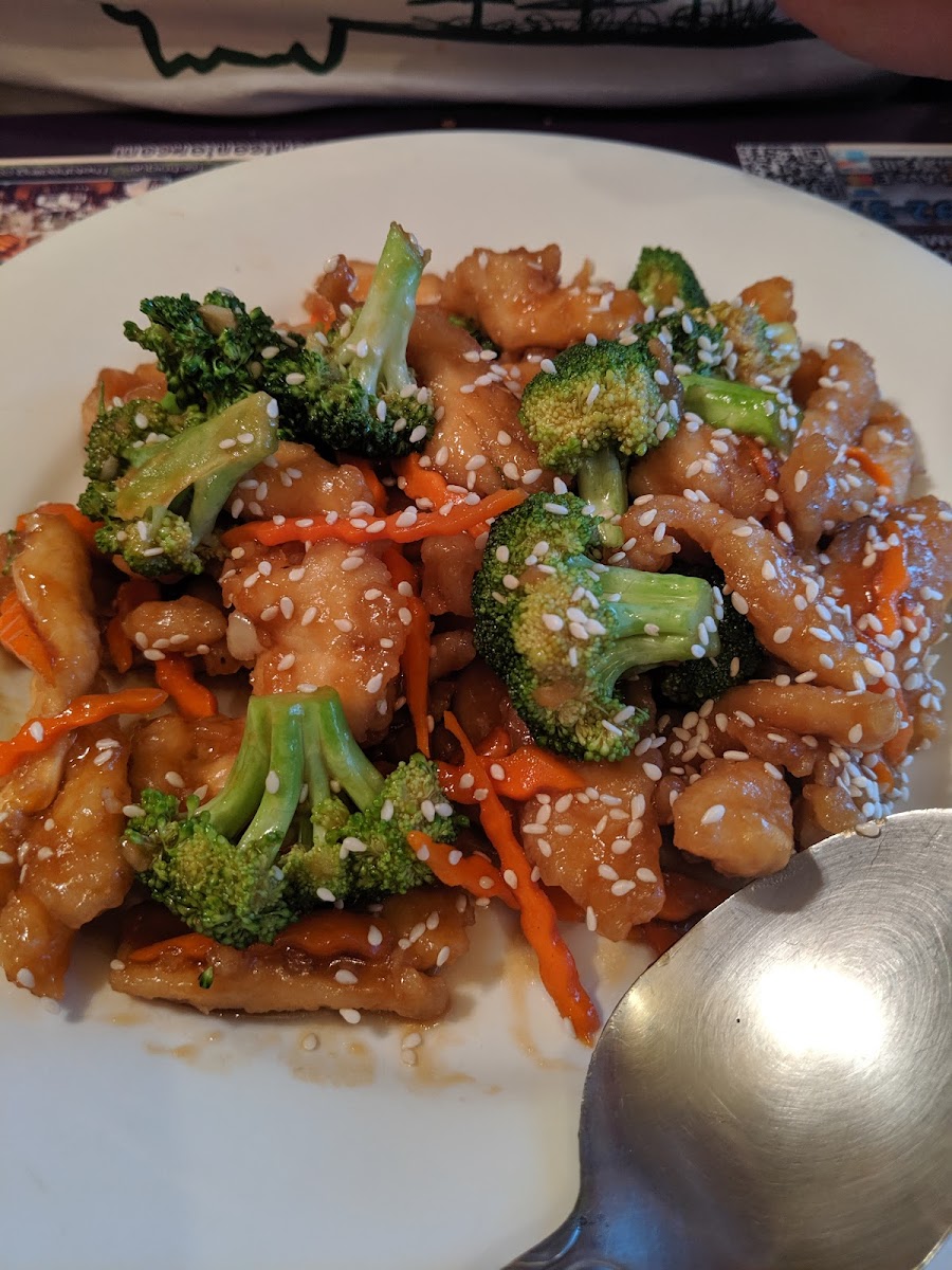 Dinner here was very nice. Pictured here are sesame chicken, wonton soup, and combo (aka fried) rice. Everything was flavorful and fresh with good portions. I especially liked the wonton soup - I had never had it prepared that way but it was excellent. The staff were friendly and attentive. Overall I was surprised to find a Chinese restaurant of this quality here in Montana.