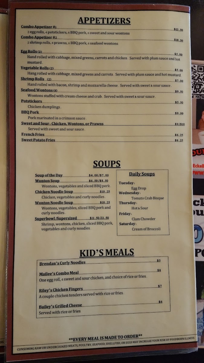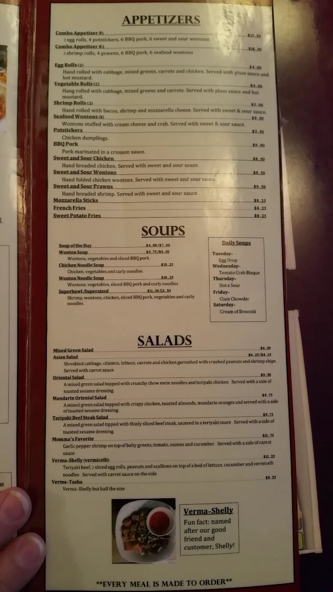 REGULAR COMBO MEALS INCLUDE ONE EGG ROLL, A MINI ASIAN SALAD, & A CUP OF THE SOUP OF THE DAY