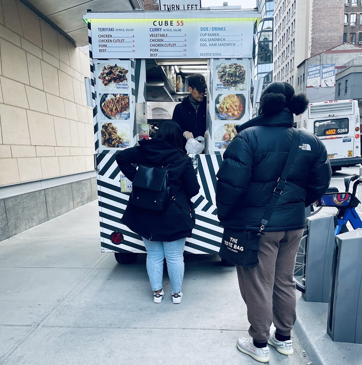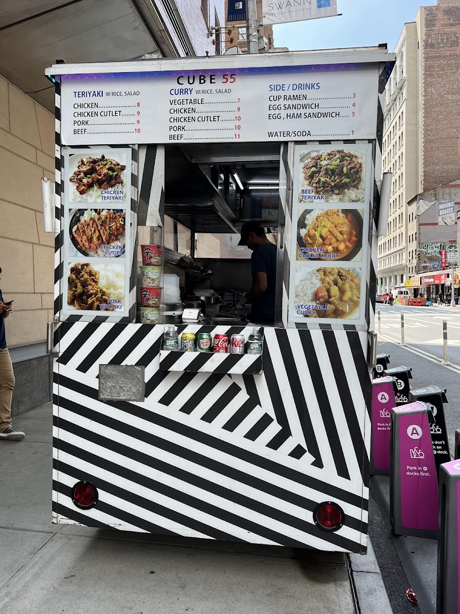 Cube 55 is a Japanese takeout food cart. it is a small cart in front of Baruch’s bookstore. the cart is a one-man show that serves up a small menu over Japanese dishes. this cart is pretty busy bc most of the customers are from Baruch College. ordered the Chicken cutlet over rice packed with a small salad. the chicken cutlet is nice and crispy—and fried fresh. the cutlet is get drizzle of tonkatsu sauce, and Japanese spicy Mayo. the rice is fluffy and soaks up the sauces and chicken cutlet juices. and the salad gets a light white sauce. for food cart food, i was really satisfied. filling, flavorful, and savory. the chicken cutlet over rice, $8 + tip. the cook / owner is friendly and nice. originally, i was going to get the Japanese curry over rice, but he ran out of it. but he gave me a little of what was leftover with my order.