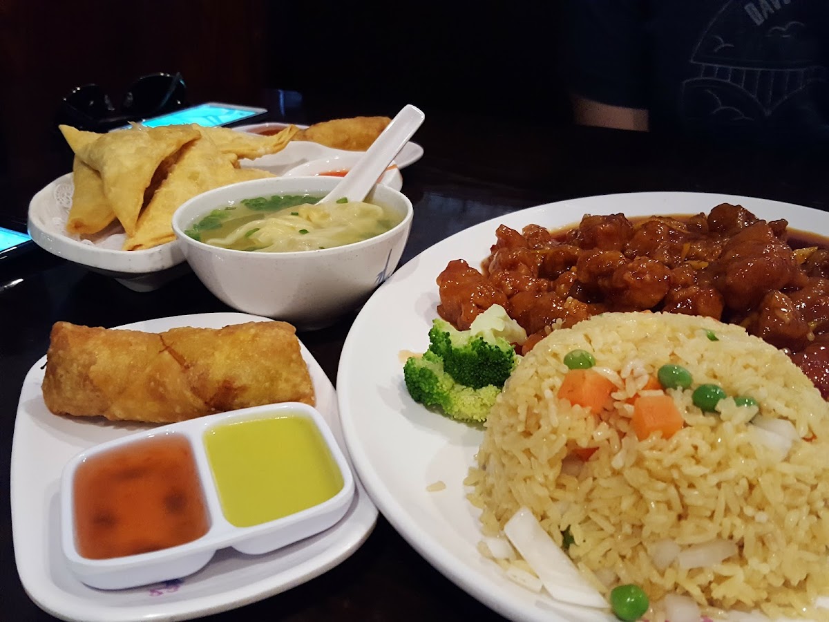 Friendly staff, food was made fast. Sweet & sour chicken was delicious. The red sauce was super good. It was sweet but had lots of flavor. Fried rice was okay. Veggie lo mein was really good the veggies were delicious. Crab Rangoon’s were good, some didn’t have much filling though, the batter was sweet I still thought they were good. Would definitely come back!