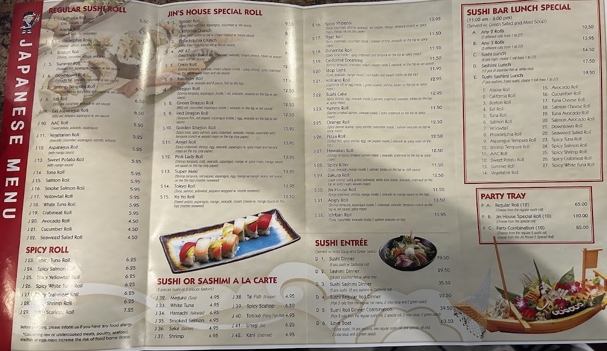 7 pieces sashimi, 3 pieces suhi, and any 1 regular roll.
