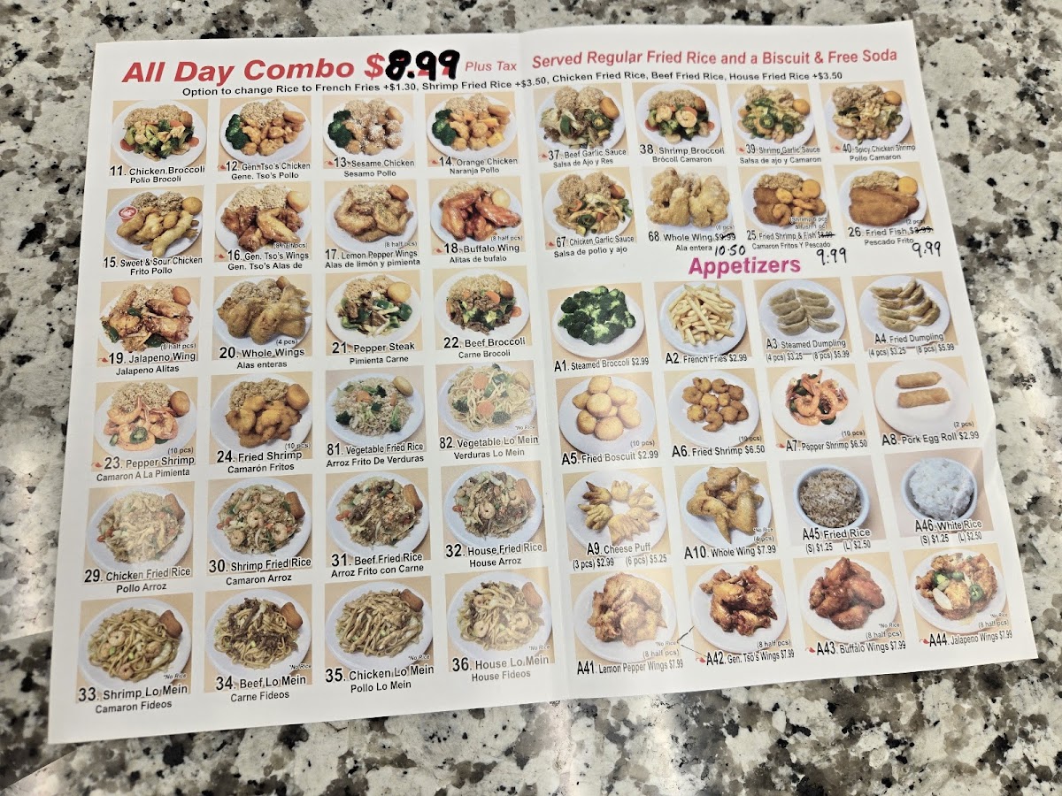 Served with regular fried rice and a biscuit.