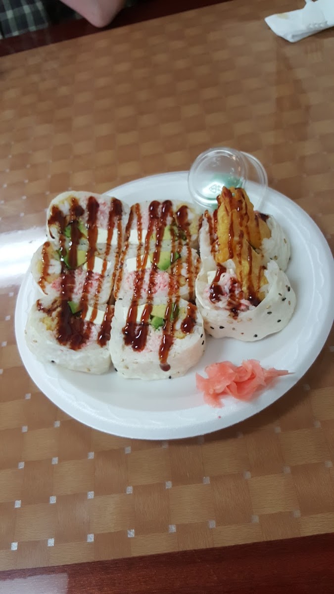 They gave us a little sushi appetizer when we dined in and the sauce along with it was an amazing. I'm my the food was so mouthwatering.