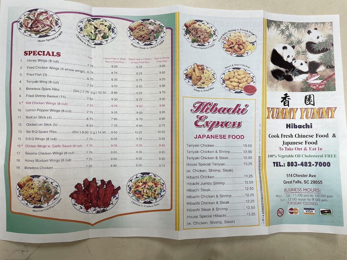 Yummy Yummy is an Asian restaurant found at 514 Chester Ave, Great Falls, SC 29055, with 29 user reviews. This venue is known for its streamlined service, as there are no wait times recorded on any day from Tuesday to Sunday. The menu features a variety of hibachi-style dishes, including the House Special Hibachi, Hibachi Steak & Shrimp, Hibachi Chicken & Steak, Hibachi Chicken & Shrimp, and Hibachi Steak. These options highlight the restaurant’s focus on grilled Asian-inspired meals that appeal to those seeking a straightforward yet tasty dining option.