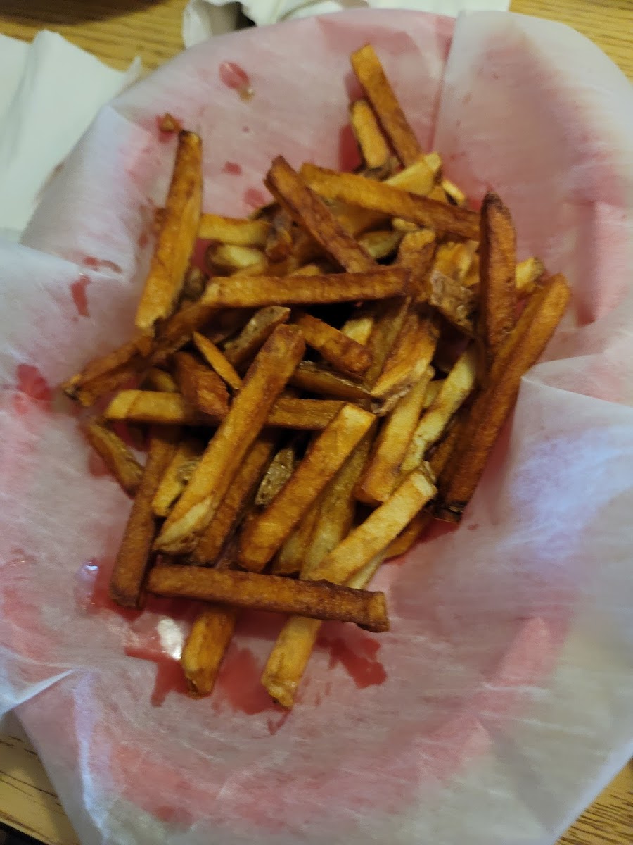 Got the fish and ships(solid 4/5). Was not disappointed. I also got the Bosco sticks (motz sticks.. I would give them a 2/5) my coworker got the burger. My bill was only $22. Not a bad place for lunch!