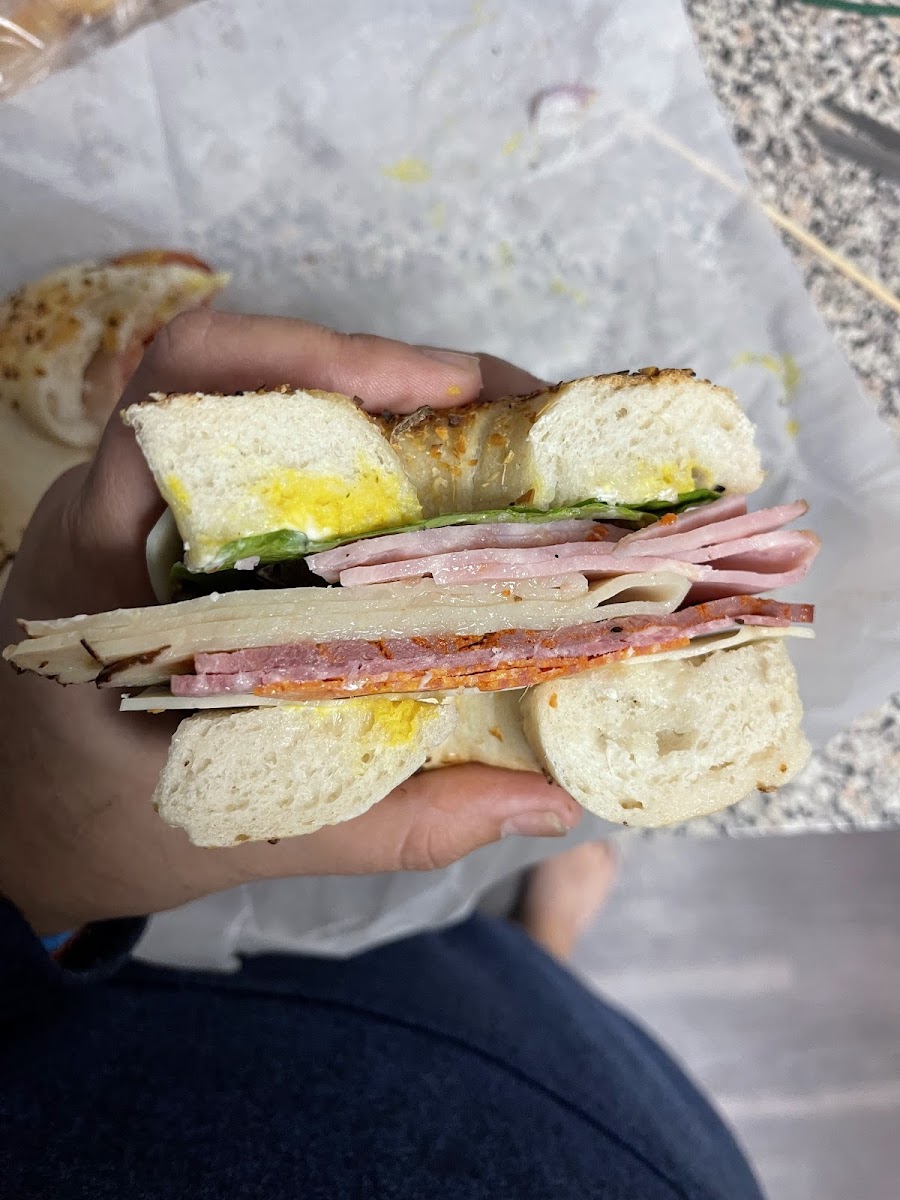 Had the most amazing bagel I've had in Florida: Nova with jalapeño cream cheese on a Sesame bagel! Bagel was fresh and perfect toasted with generous amount of Nova, and fresh onions and tomatoes. Jalapeño cream cheese gave it a nice kick! Store is well staffed with polite and efficient employees.