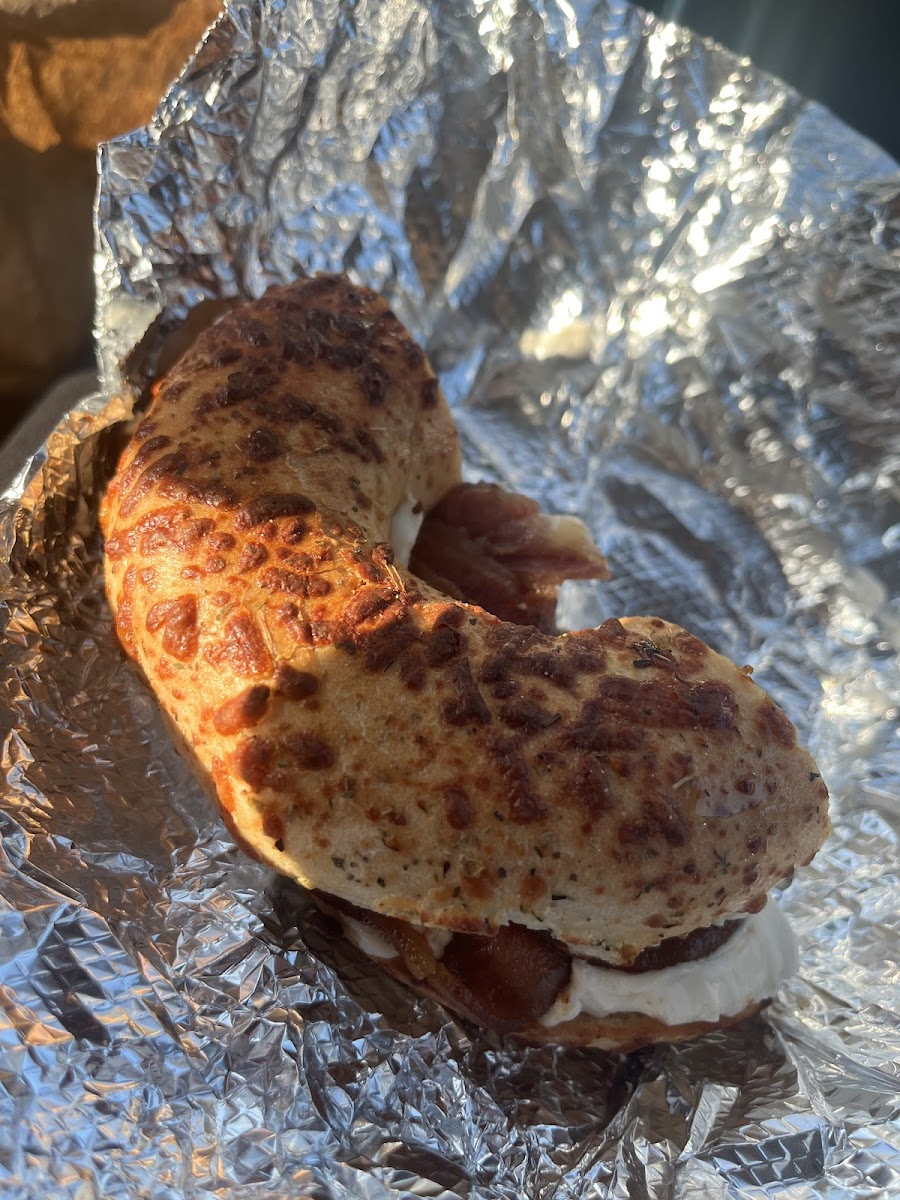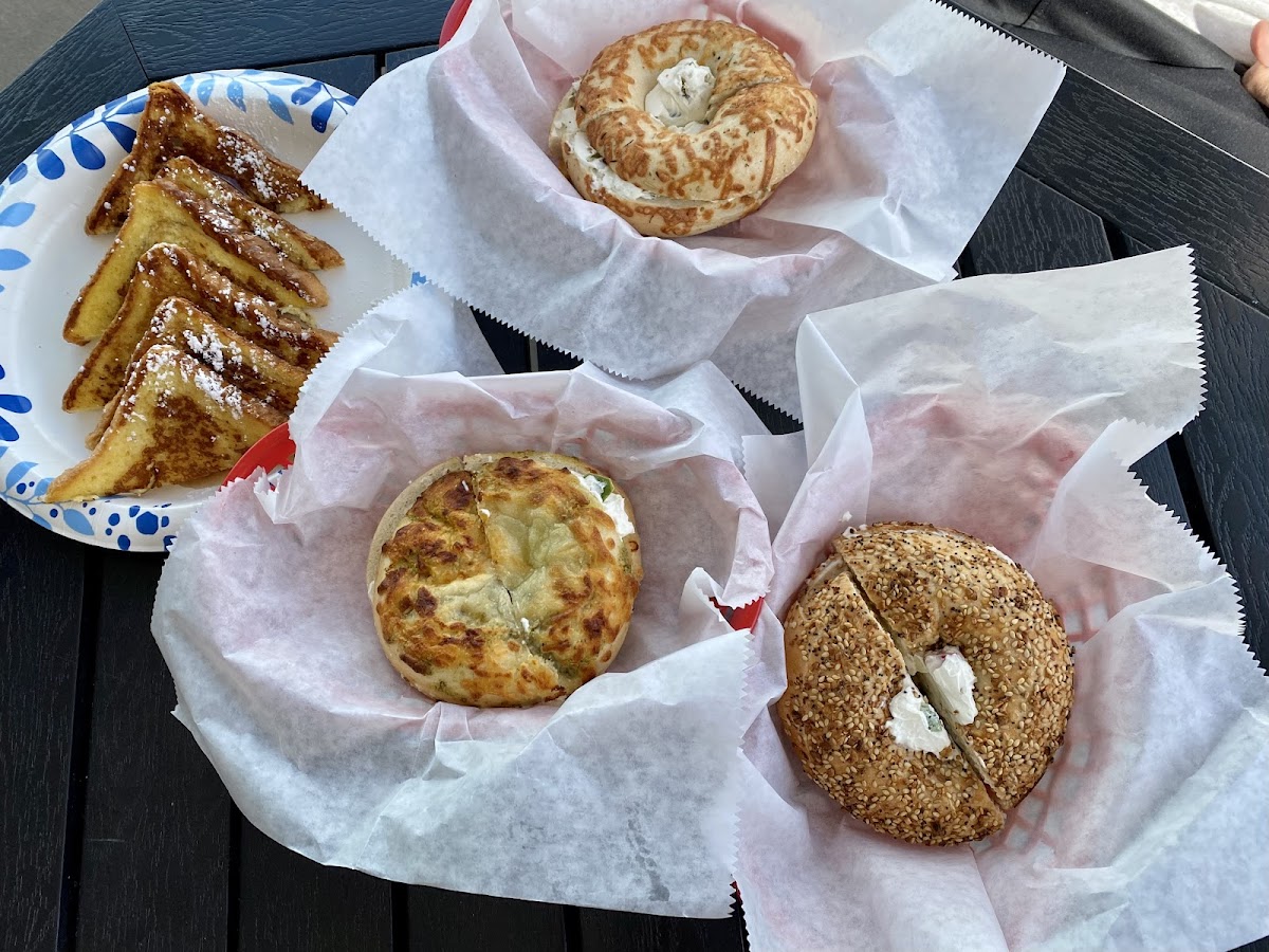 We stopped by, this past Monday and the line was very long. To entertain ourselves while waiting in line, we watched the staff, which is a show in itself. they’re both quick and they were moving around fast. A young tall man and a perky, funny blonde, in a sorority hat, took our orders, they were both friendly and Heidi was funny, she suggested the cinnamon bagel, with honey walnut cream cheese for our omelette, which turned out to be the best choice and it was amazing. The staff here are so nice and they really make sure you’re happy by coming outside and checking on you after you receive your breakfast. We will definitely be back.