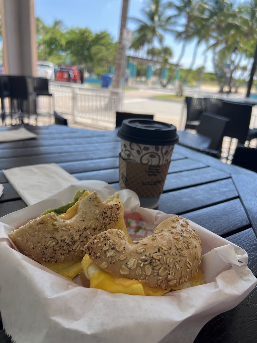 This is my go-to spot for a delicious breakfast! The French toast bagel with honey walnut cream cheese is incredible, and the caprese panini is a must-try. The best part? A gorgeous view and the beach just a 2-minute walk away. Highly recommend!