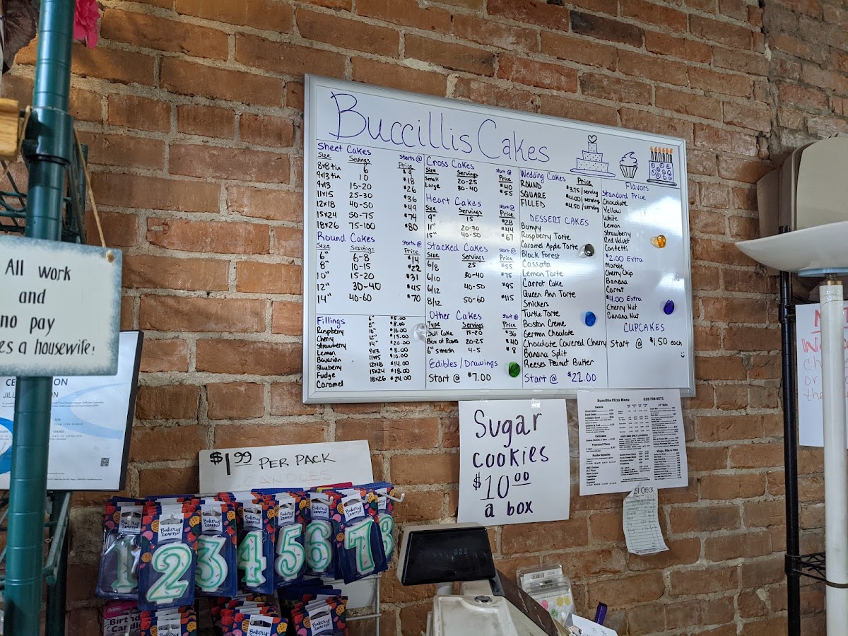 Buccilli's Cakes And Pizza Menu