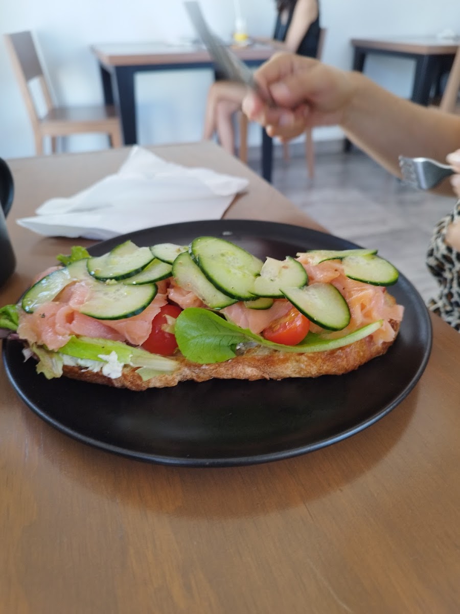 Scrambled eggs and omelette were flavorful! We also had coffee and the pistachio pastry which were also great. Expensive prices and the interior is slightly hot