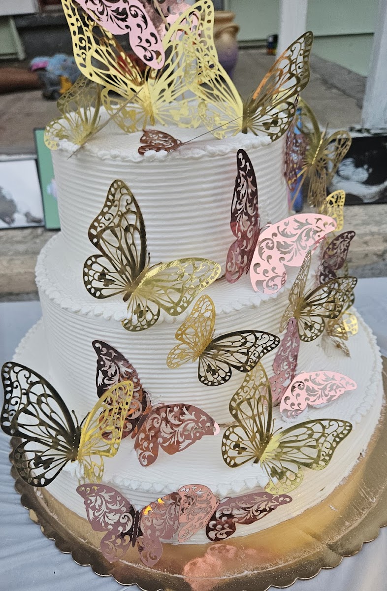 Ordered a 3 tier cake at La Baguette in Elizabeth to be picked up here, for me to arrange it myself with my own decorations since the party was in Connecticut the following day, and they did a great job working with me. It was very tasty and great texture (even after being in the fridge overnight for the party the next day)
