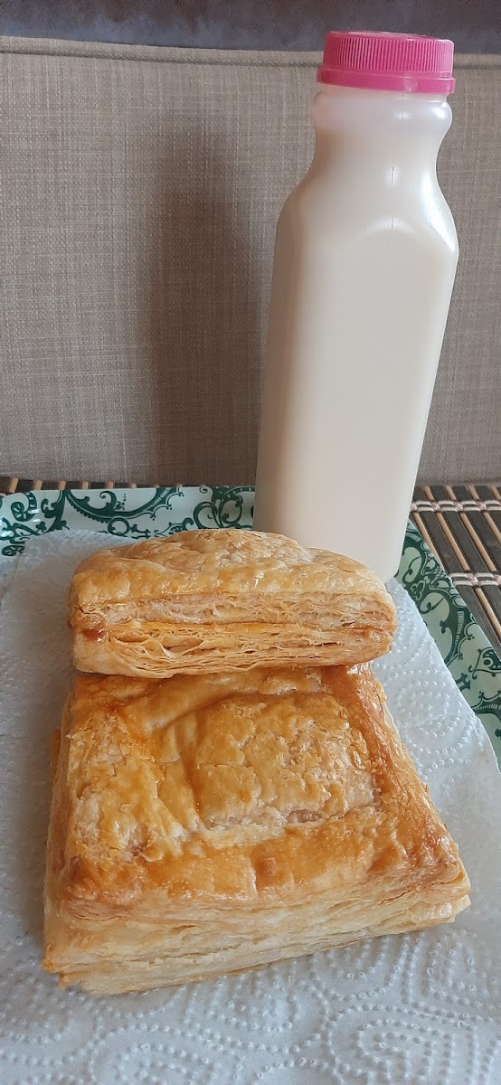 Bought 3 different kind of patties--chicken, beef and cod. I only tasted a chicken patty which was delicious and flakey. It had a generous amount of well seasoned and minced chicken inside. I ordered the 24 patties around 7:30 a.m. to take to my sister's; who is in a nursing home. I picked them up around 10:00 a.m. They were put in 2 great boxes. The best part was that they gave me a free Patty to eat. Just delicious!!!