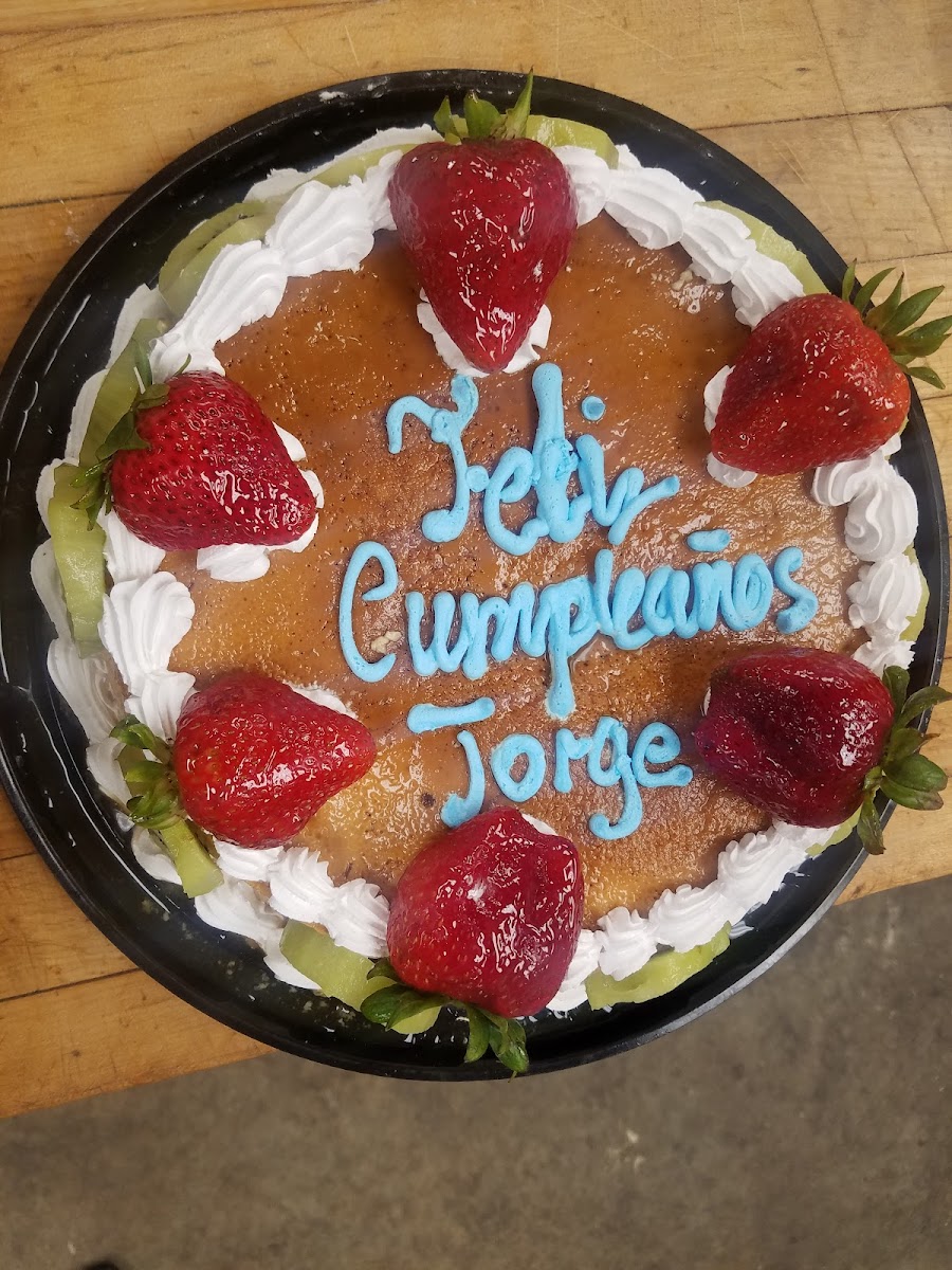 We did not get a custom cake. Only from the pastry shelf. The food was fresh and delicious. Be prepared, they are not fluent in English. Spanish if you can, or Google translate. Deserts are flavorful and not overly sweet or heavy. Very reasonable prices as well. Atmosphere is so so. It's a little place in a strip mall. Thank you!