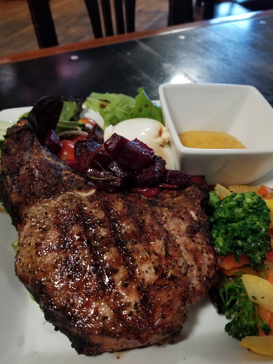 Excellent meals. The tenderloin filet was perfectly cooked medium rare & very tender. The pork chop with cherry gaujillo was very tasty. Both were plentiful servings. Sides of bake potato, fries, sweet potato & asparagus were also great. I have had this restaurant on my want to go list for a while, we will come back again.