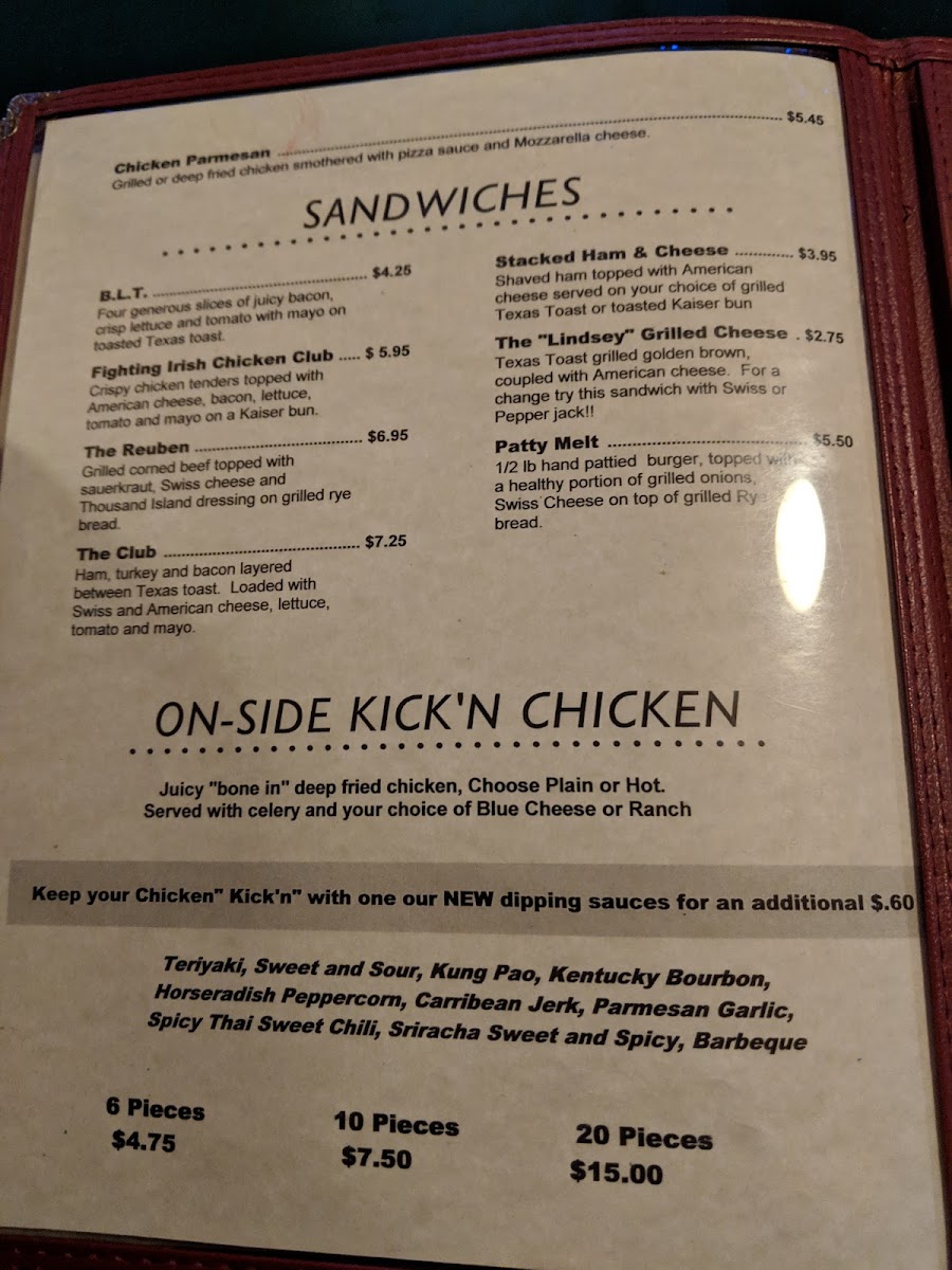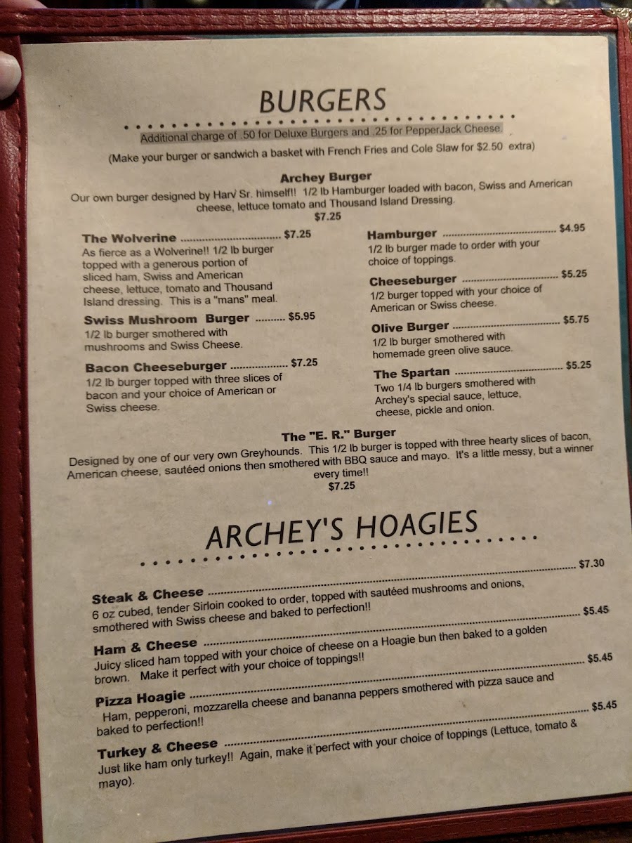 1/2 lb hand pattied burger, topped with a healthy portion of grilled onions, Swiss Cheese on top of grilled Rye bread