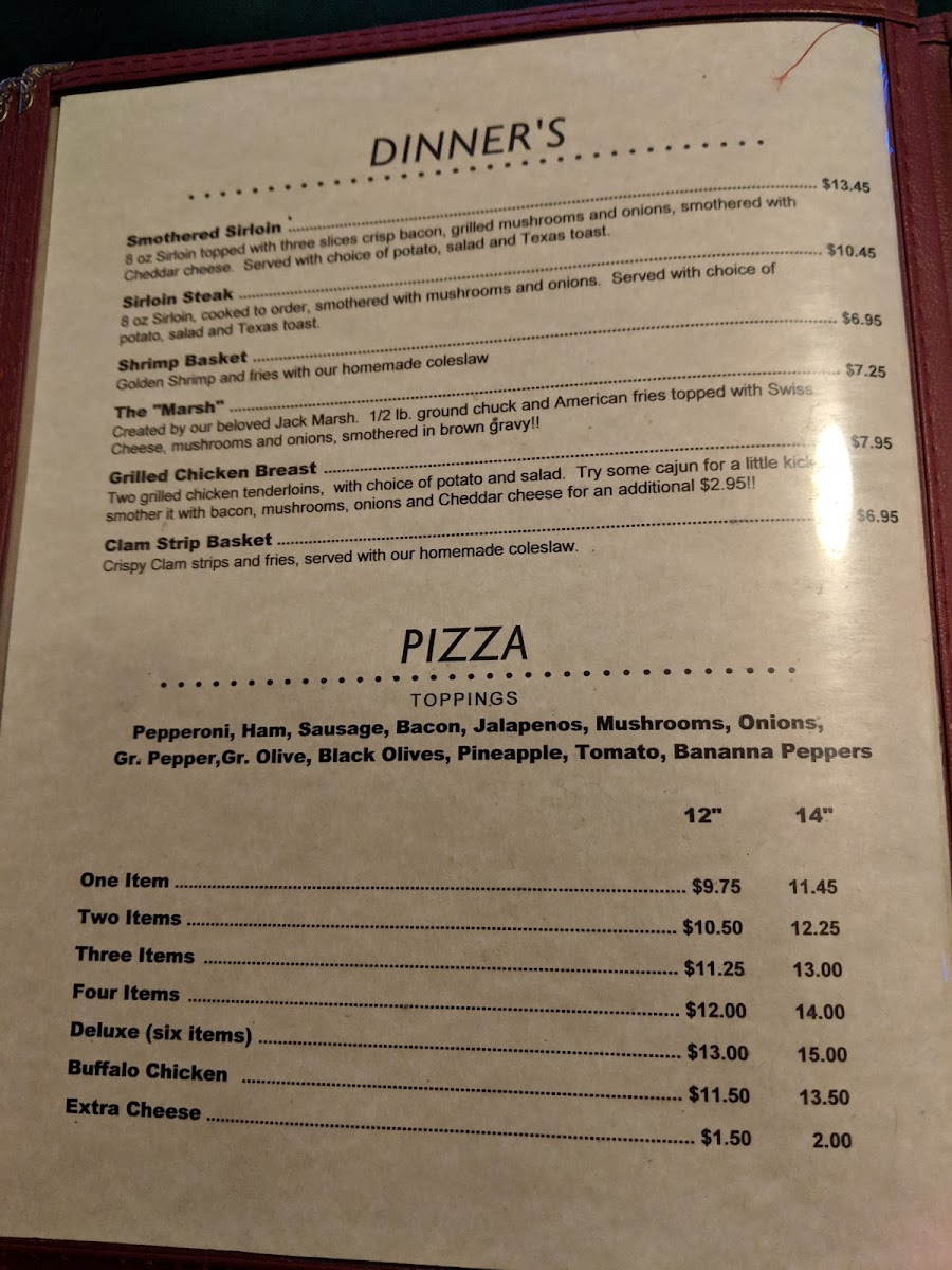 8 oz Sirloin topped with three slices crisp bacon, grilled mushrooms and onions, smothered with Cheddar cheese. Served with choice of potato, salad and Texas toast